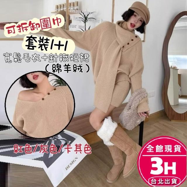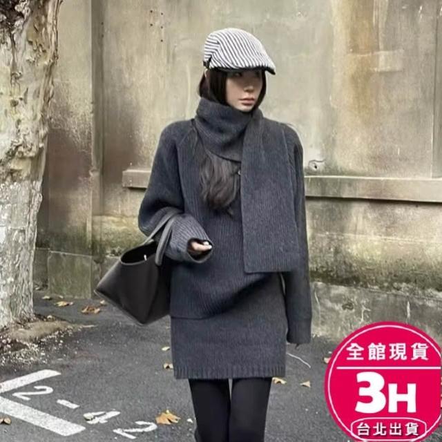 AS 梨卡隔日到貨 女裝 毛衣 短裙【套裝】秋冬針織 寬鬆毛衣 包臀半身裙 休閒短裙 顯瘦套裝 ES063【現貨24H】