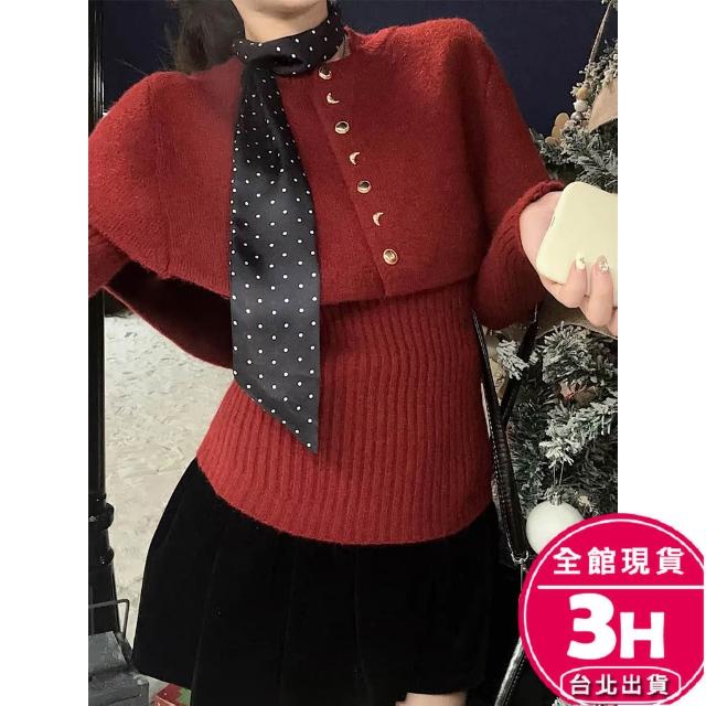 AS 梨卡隔日到貨 女裝 毛衣 披肩【套裝】復古毛衣 斗篷披肩 保暖毛衣 韓系套裝 百搭套裝 ES104【現貨24H】