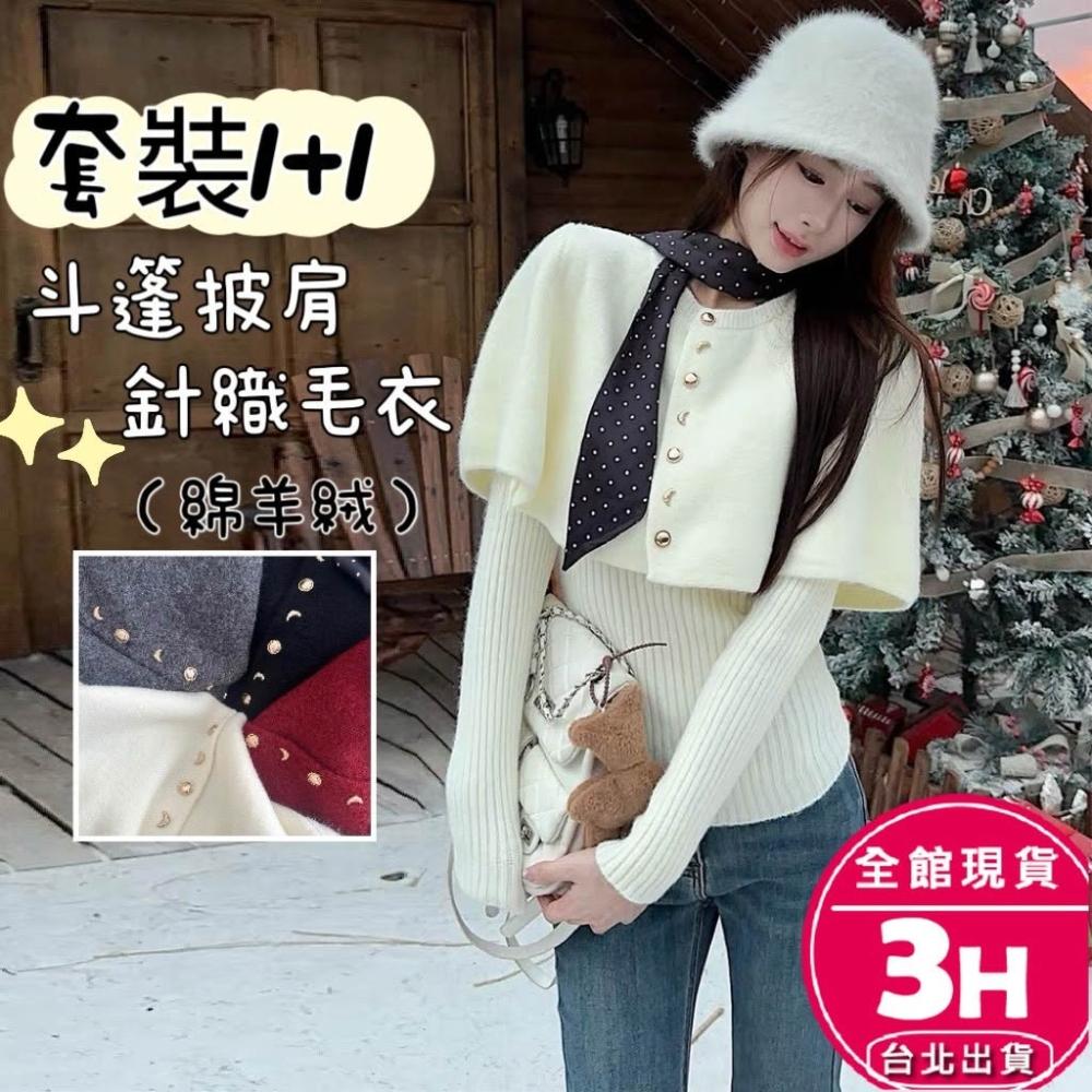 AS 梨卡隔日到貨 女裝 毛衣 披肩【套裝】復古毛衣 斗篷披肩 保暖毛衣 韓系套裝 百搭套裝 ES104【現貨24H】