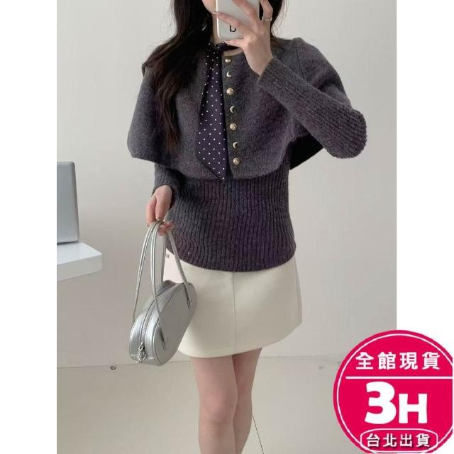 AS 梨卡隔日到貨 女裝 毛衣 披肩【套裝】復古毛衣 斗篷披肩 保暖毛衣 韓系套裝 百搭套裝 ES104【現貨24H】