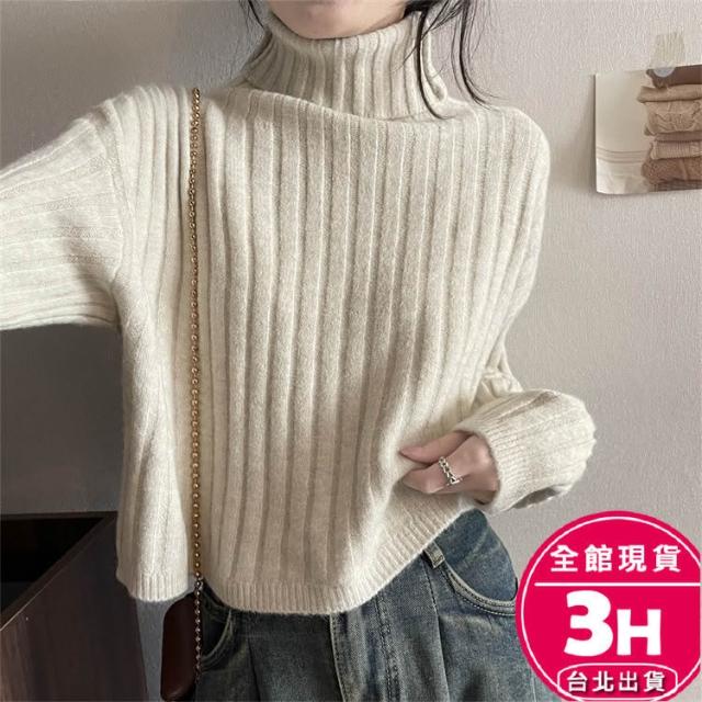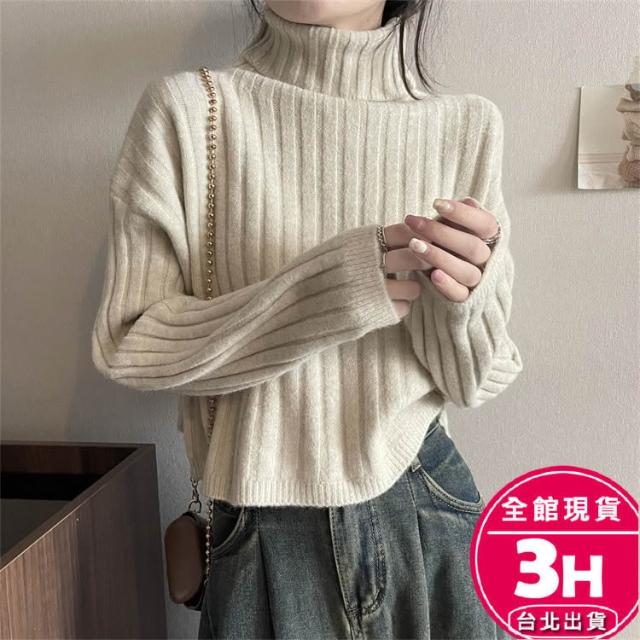 AS 梨卡隔日到貨 女裝 毛衣 針織 上衣 高領毛衣 坑條上衣 休閒毛衣 短版針織 韓版毛衣 ES103【現貨24H】