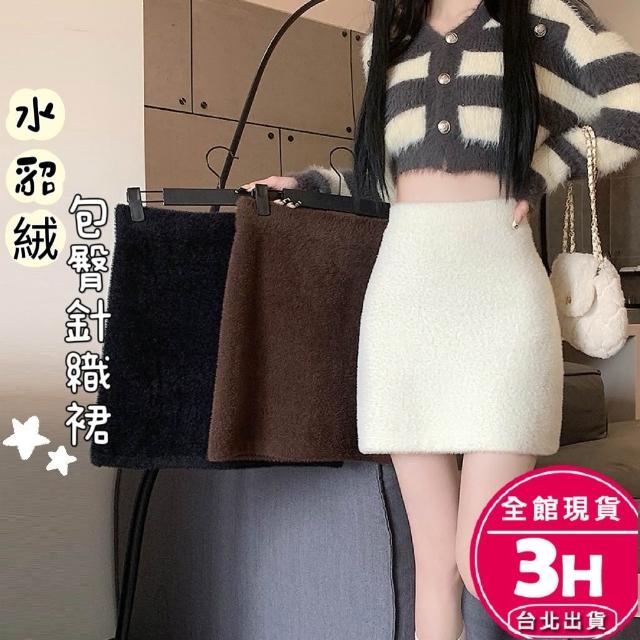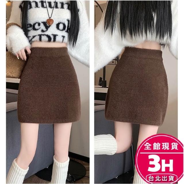 AS 梨卡隔日到貨 女裝 短裙 半身裙 針織 水貂絨 毛茸茸 高腰a字裙 辣妹包臀裙 秋冬針織 XF057【現貨24H】