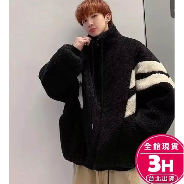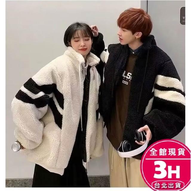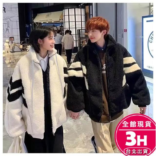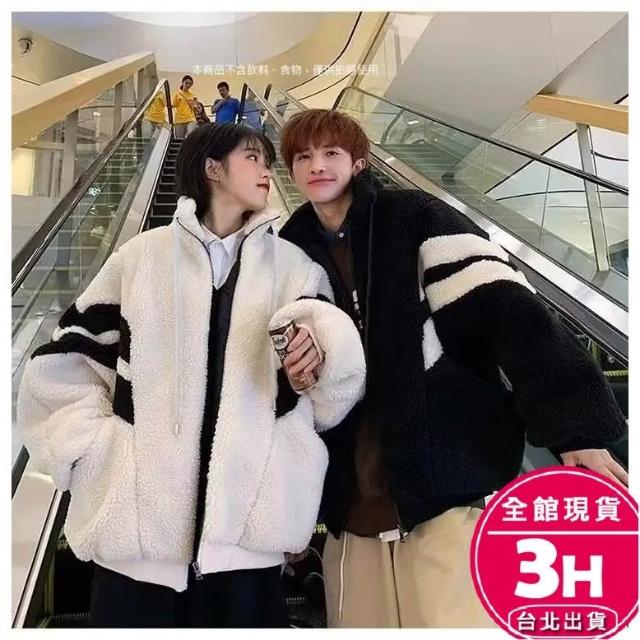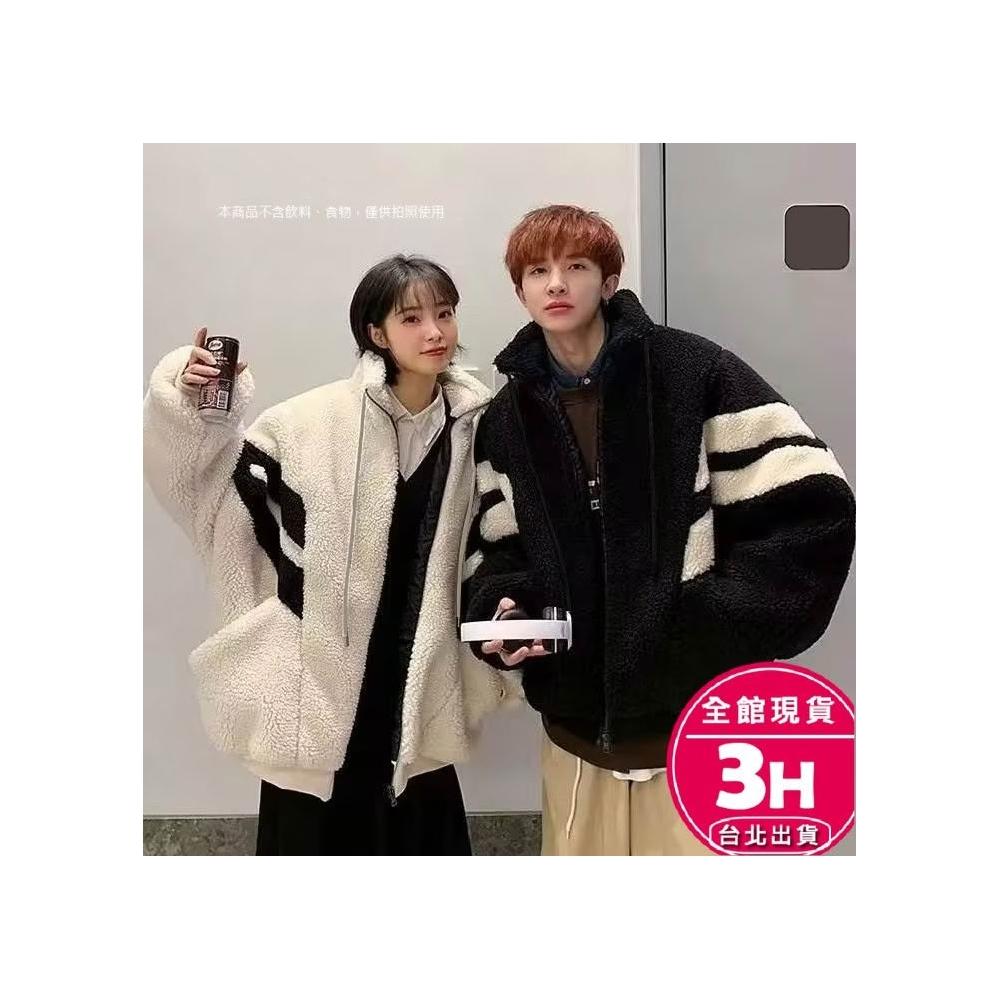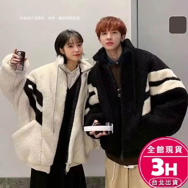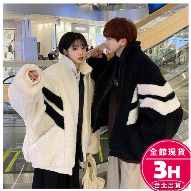 AS 梨卡隔日到貨 女裝 外套 羊羔毛絨 毛呢 黑白拼色 寬鬆外套 保暖毛呢 秋冬毛呢 加厚保暖WT2859【現貨24H】