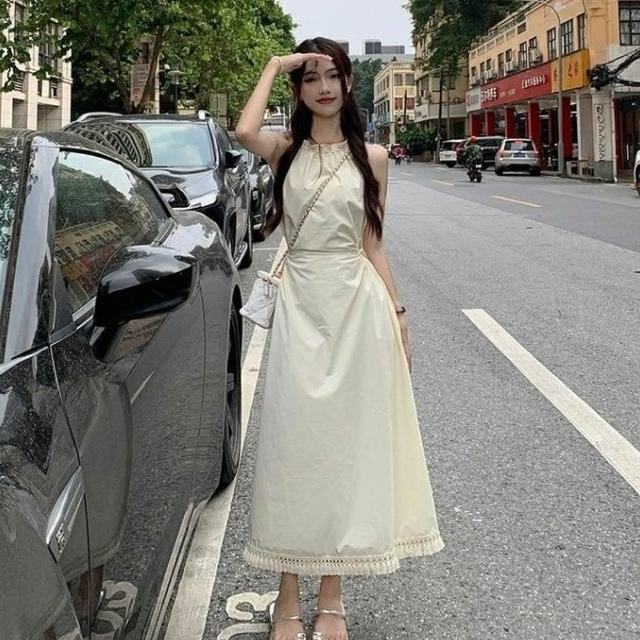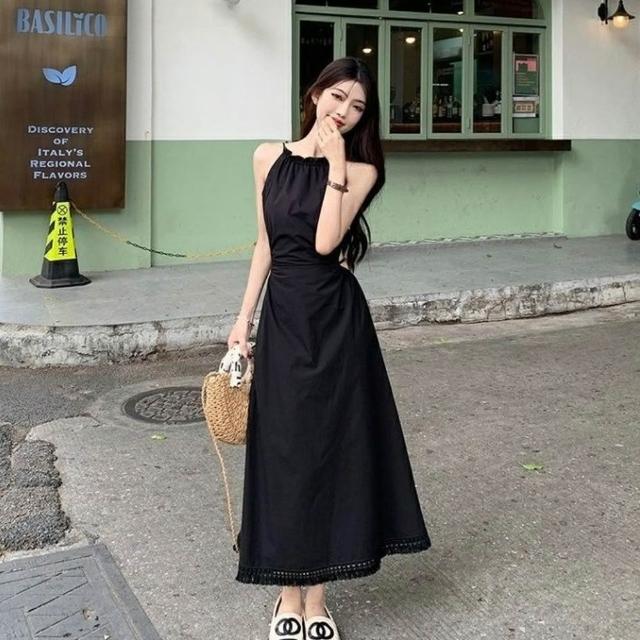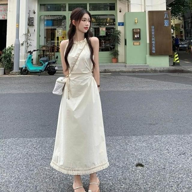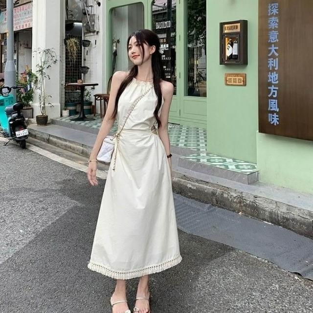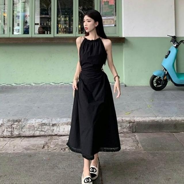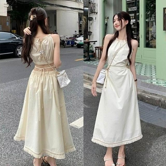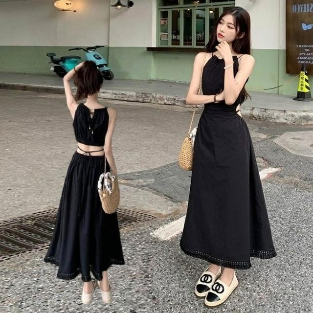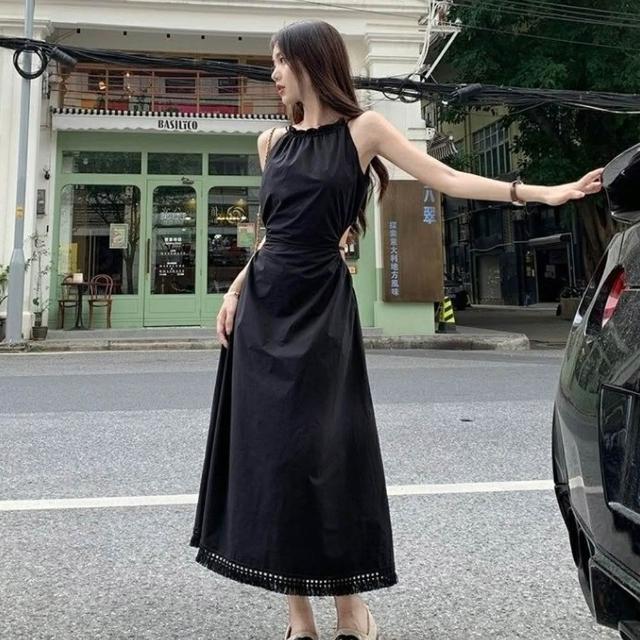 AS 梨卡【梨卡】隔日到貨 女裝 洋裝 長裙 連身長裙 鏤空露腰 綁帶連身裙 吊帶洋裝 收腰長裙 度假洋裝HZ039【現貨24H】