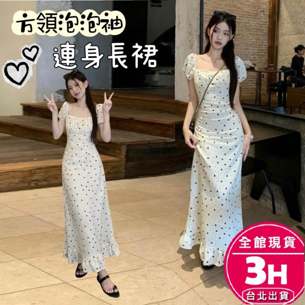AS 梨卡【梨卡】隔日到貨 女裝 洋裝 長裙 連身長裙 方領泡泡袖 氣質長裙 碎花洋裝 夏季 顯瘦洋裝HZ0519【現貨24H】