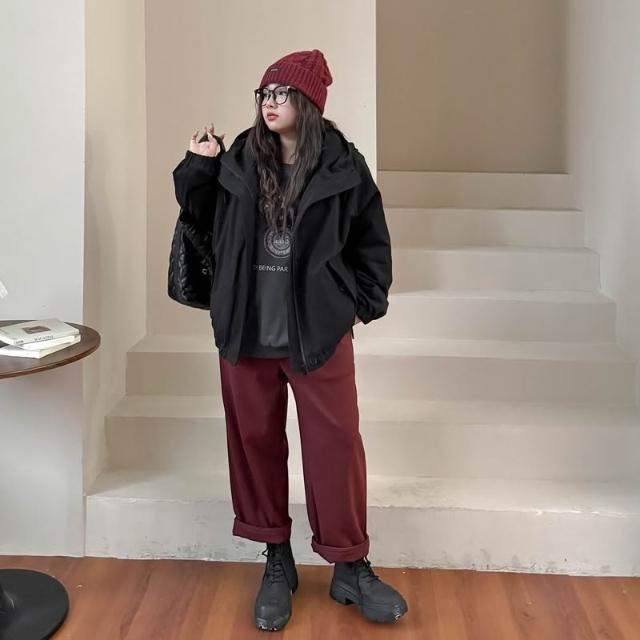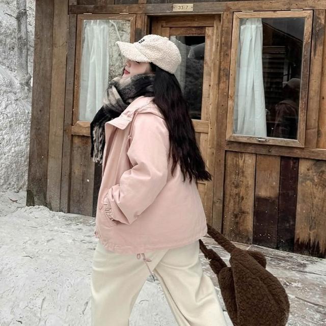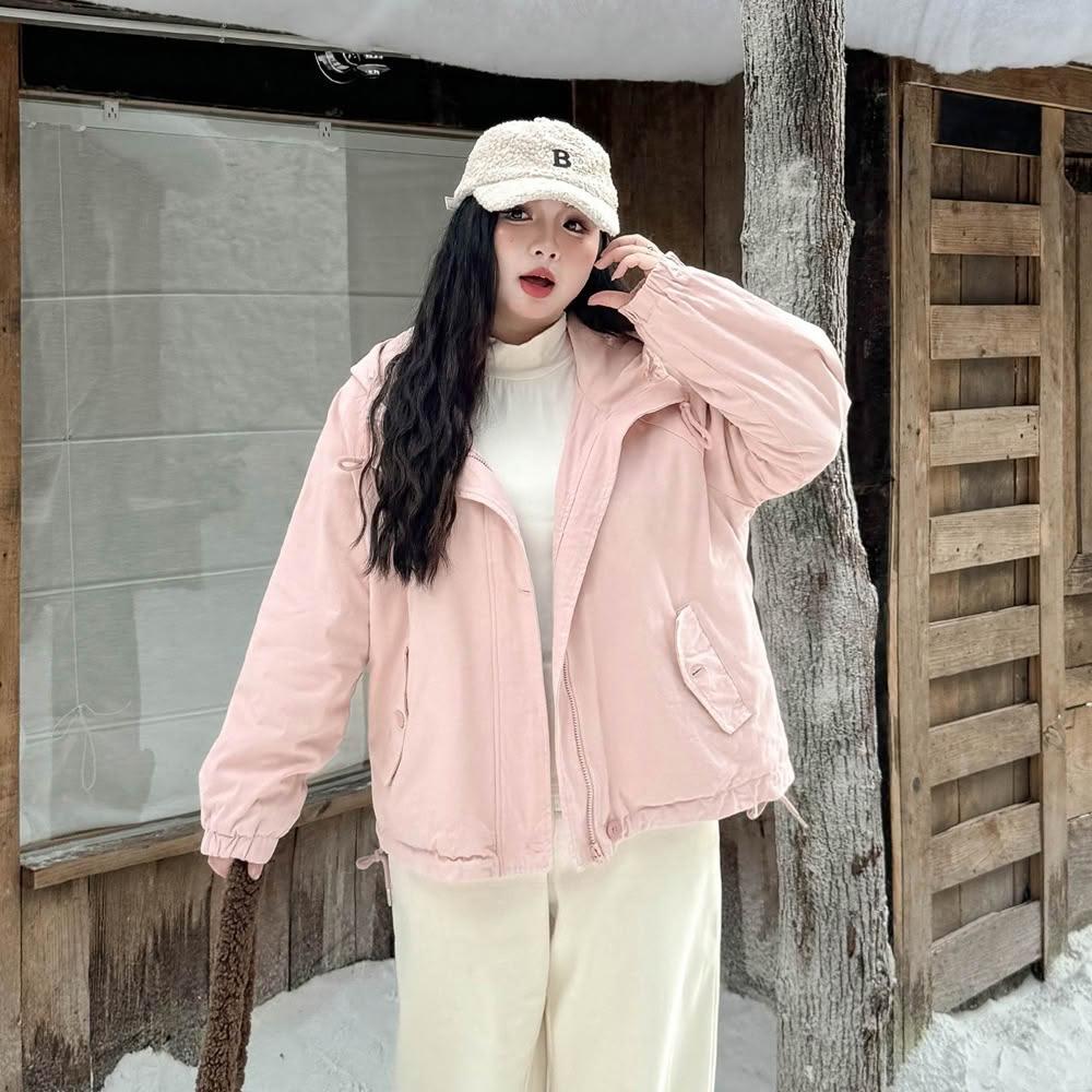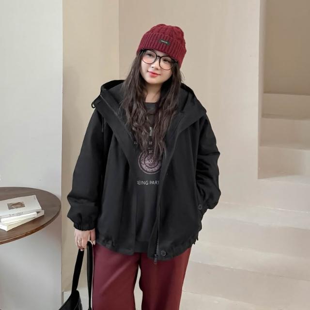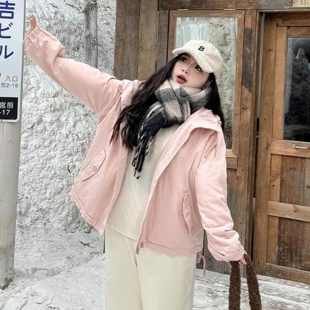 iss38 韓系休閒 鋪棉連帽外套【CC6406(2色)大尺碼加厚夾棉保暖夾克 開扣拉鍊有口袋 抽繩下擺 寬鬆時尚