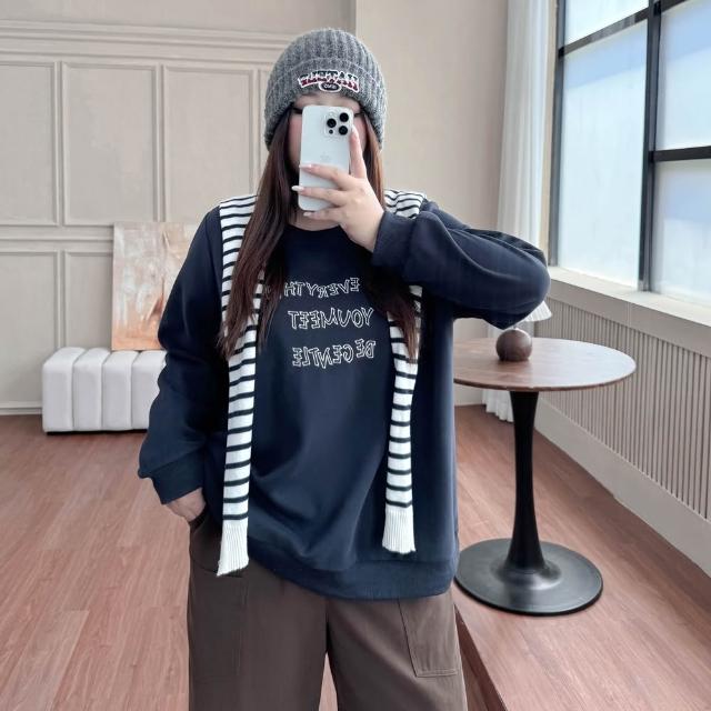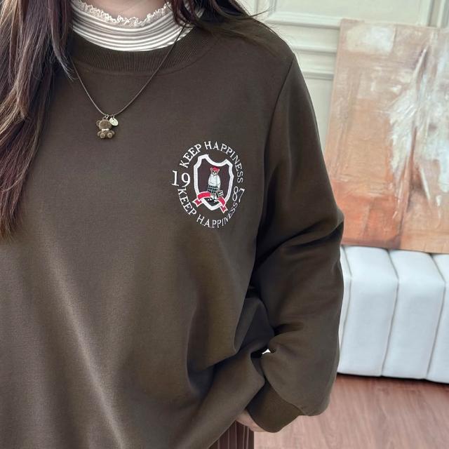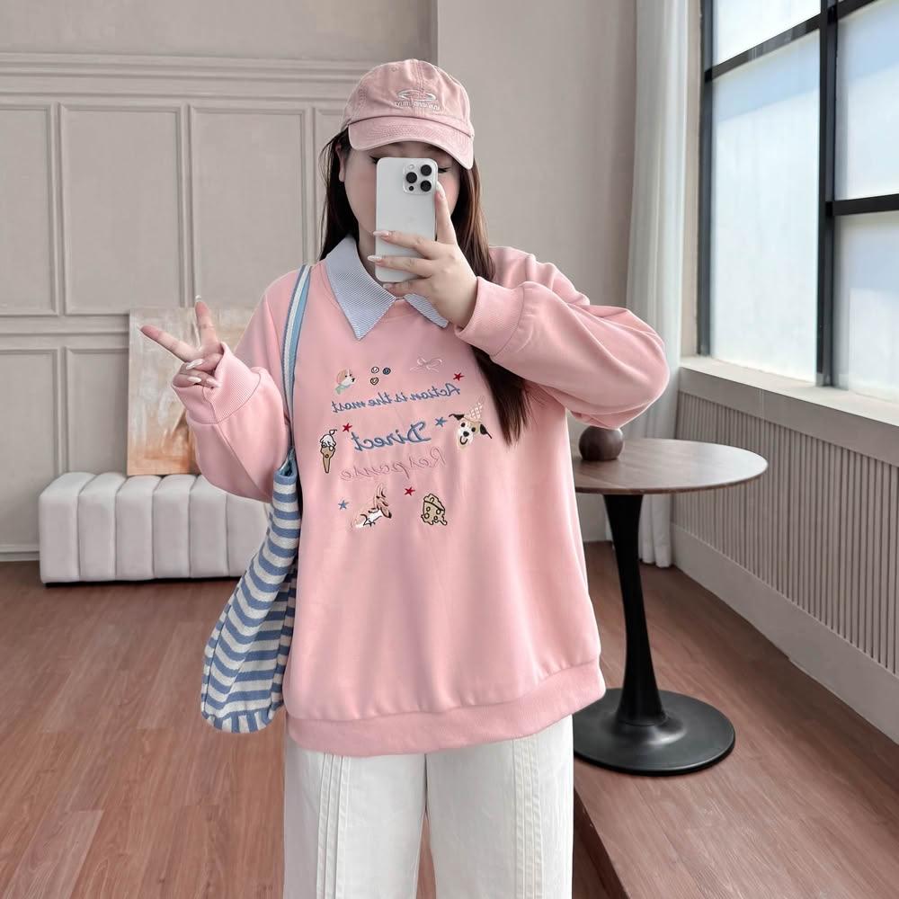 Miss38Miss38 韓系 繽漾刺繡圓領大學T【DC8379-1】(3色)大尺碼長袖衛衣 繽紛刺繡 正肩修身 寬鬆遮肉 休閒百搭