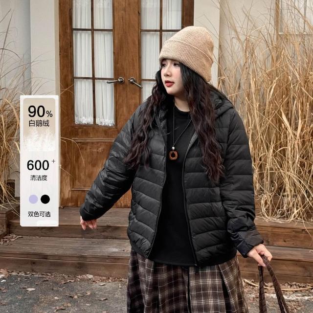 Miss38Miss38 保暖加倍 輕薄鵝絨羽絨服【A1453-2】(3代升級版)石墨烯大尺碼連帽外套 90%鵝絨 冬日防風寬鬆百搭