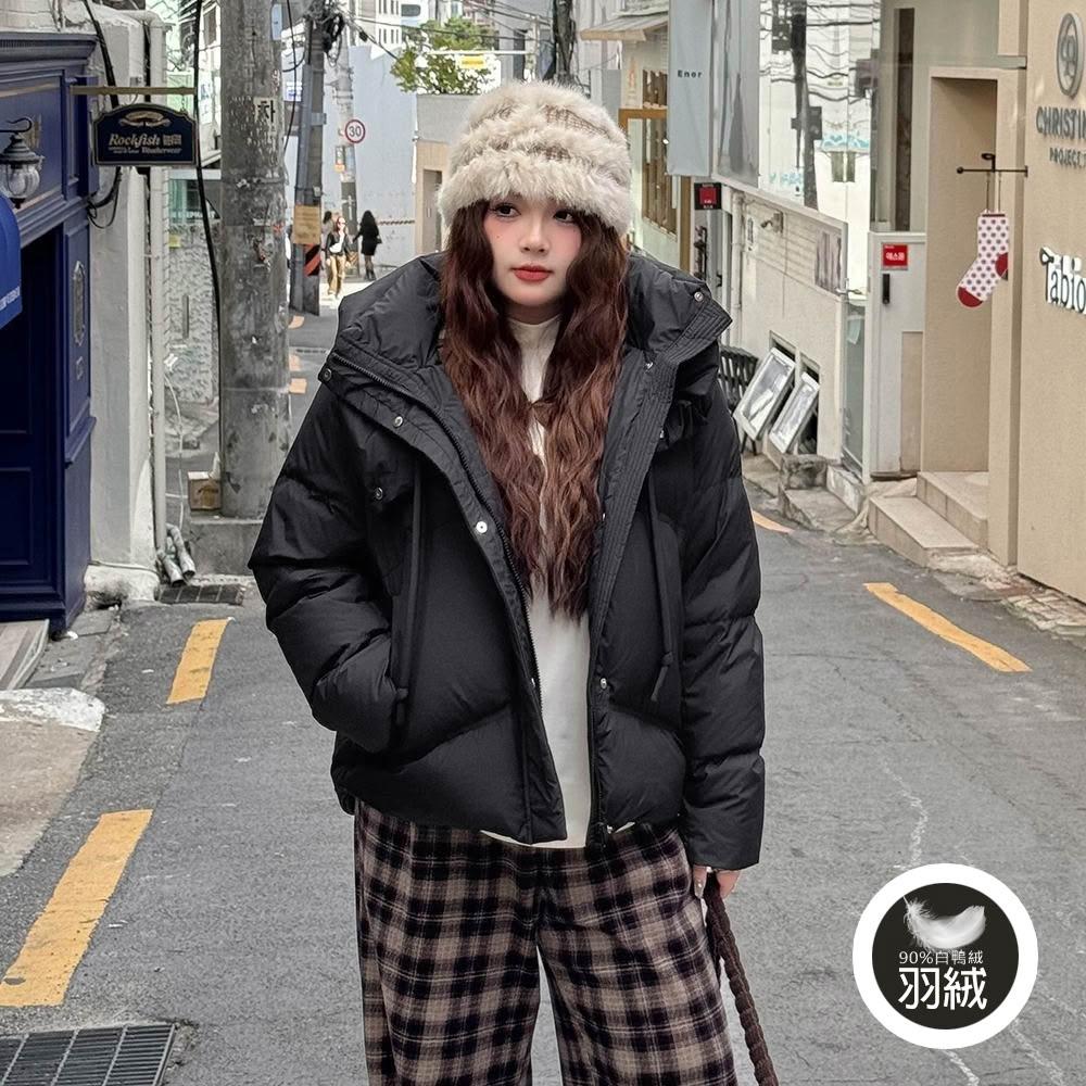 Miss38Miss38 韓系純色背帶羽絨服 連帽外套【DD8459 宅配免運】(2色)大尺碼 90%白鴨絨 石墨烯防風保暖麵包服
