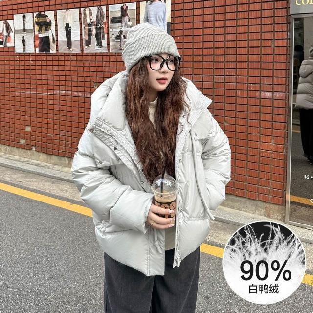 Miss38Miss38 韓系純色背帶羽絨服 連帽外套【DD8459 宅配免運】(2色)大尺碼 90%白鴨絨 石墨烯防風保暖麵包服