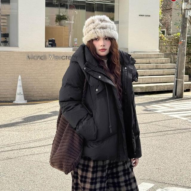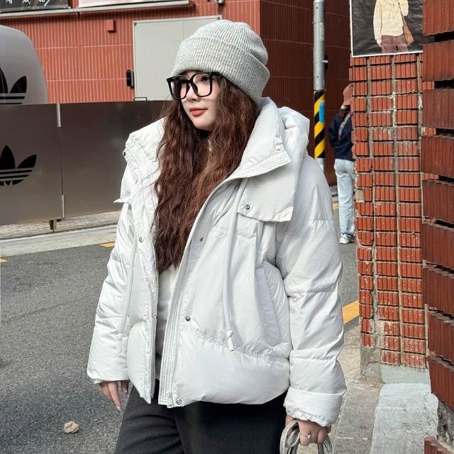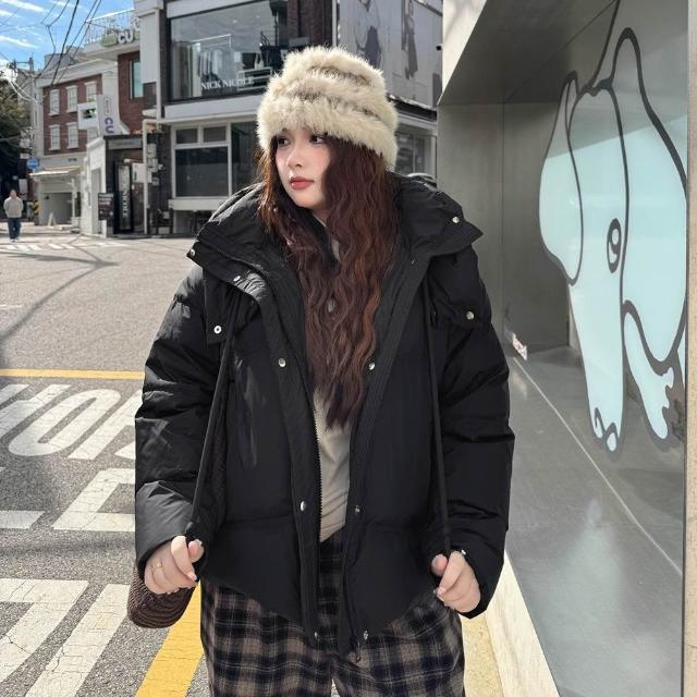 Miss38Miss38 韓系純色背帶羽絨服 連帽外套【DD8459 宅配免運】(2色)大尺碼 90%白鴨絨 石墨烯防風保暖麵包服
