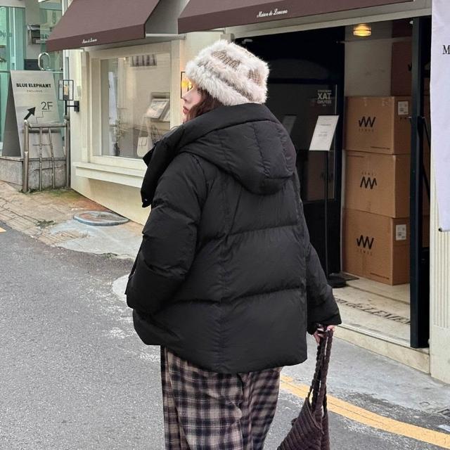 Miss38Miss38 韓系純色背帶羽絨服 連帽外套【DD8459 宅配免運】(2色)大尺碼 90%白鴨絨 石墨烯防風保暖麵包服