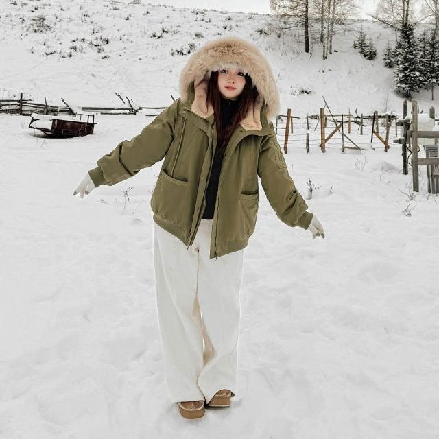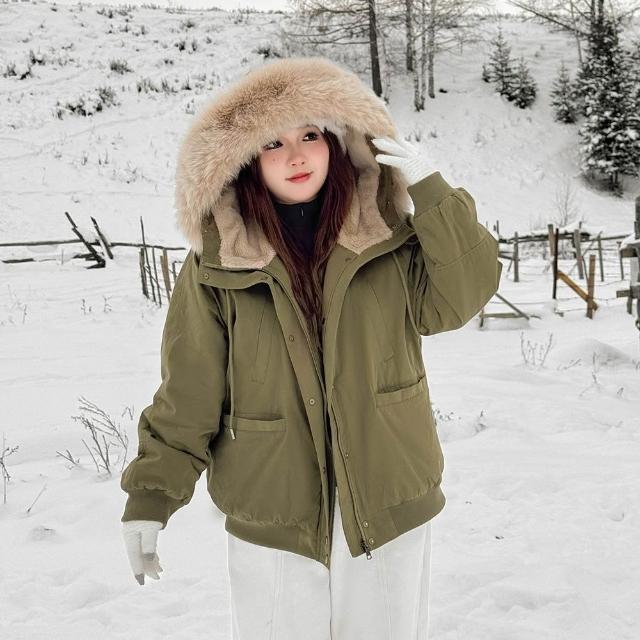Miss38Miss38 大毛領(可拆)派克棉服 連帽外套【DD8743】(現貨)棕橺綠 大尺碼保暖防風鋪棉夾克 內裡夾棉領帽加絨