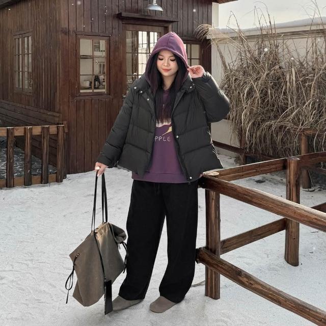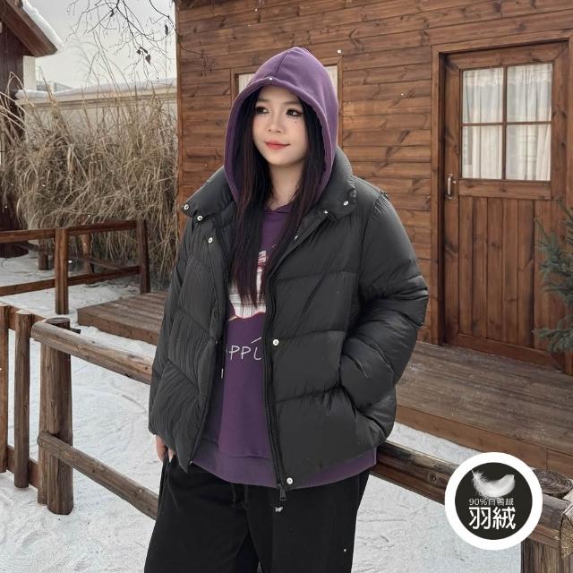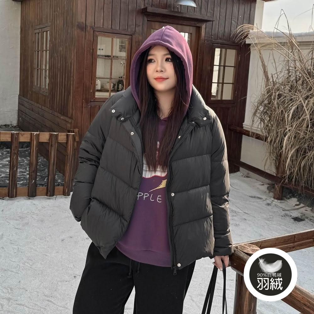 Miss38Miss38 雲感羽絨服 輕量保暖【DD8291】(現貨)黑色 大尺碼立領防風外套 90%白鴨絨 休閒百搭寬鬆 冬日暖搭