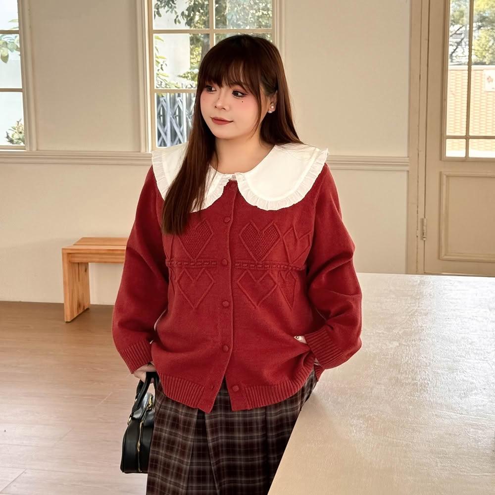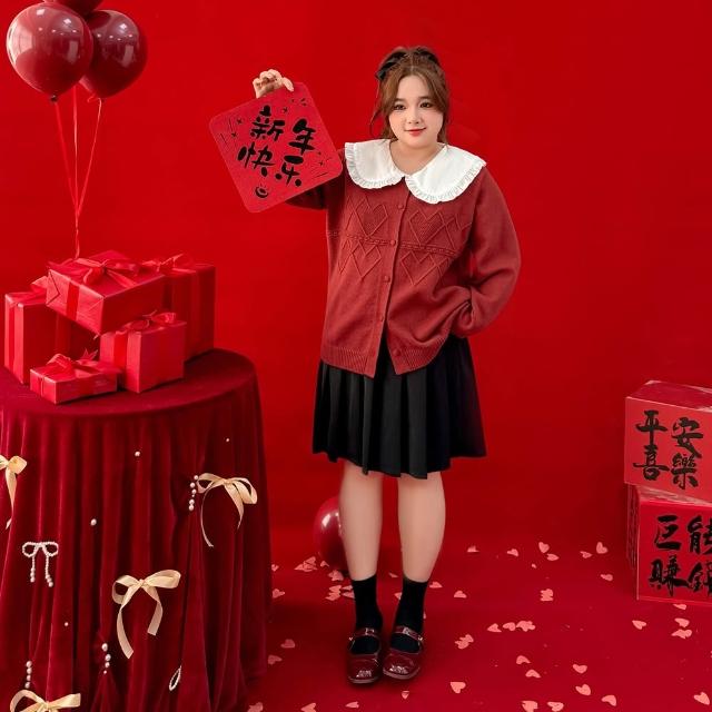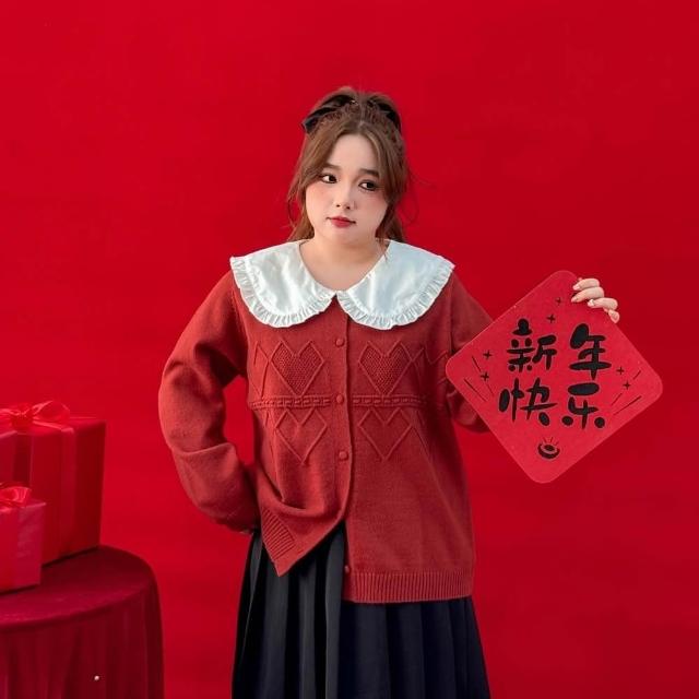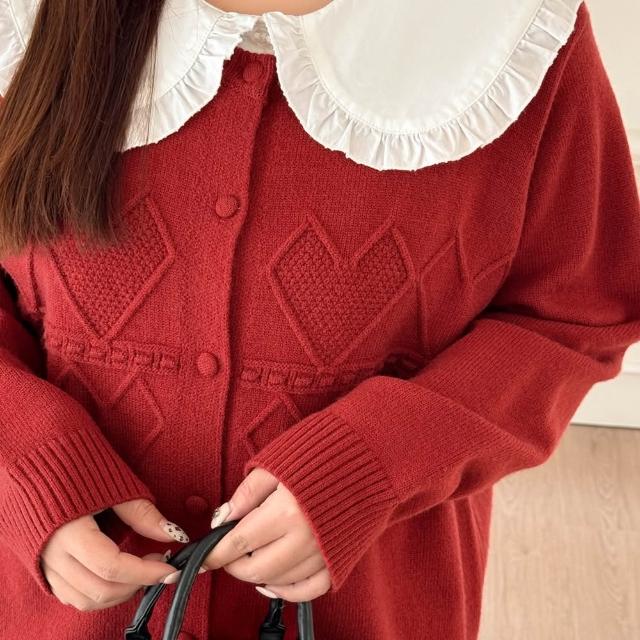 Miss38Miss38 磚紅 愛心織毛衣外套【DD8952】(現貨-不附領巾)大尺碼毛衣開衫 抗起球北極絨 純色寬鬆顯瘦 冬天穿搭