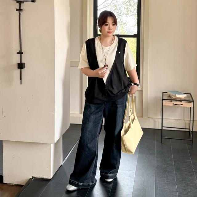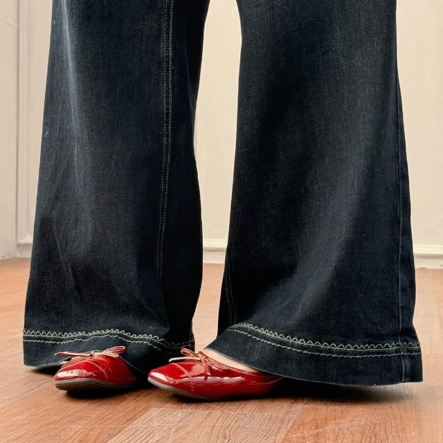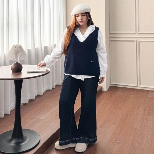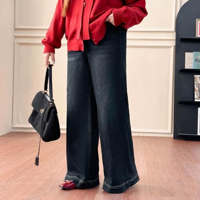Miss38Miss38 極美深藍 微喇牛仔褲【EC9153】(現貨)大尺碼直筒褲 低調刷色車線 高腰後腰鬆緊有口袋 專遮腰臀腿顯瘦