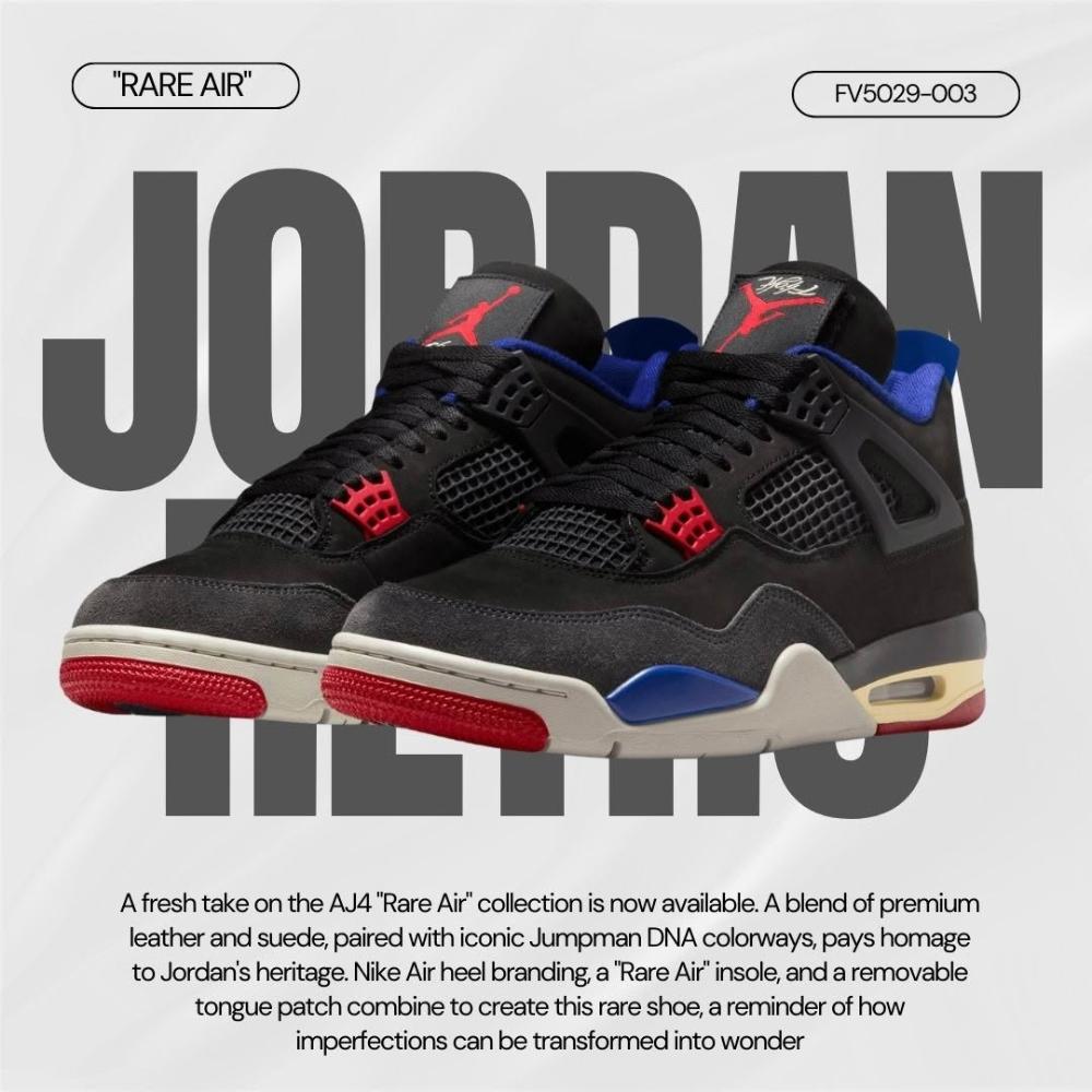 NIKE 耐吉Nike Air Jordan 4 Retro Rare Air 黑紅 隱藏款 金標 男鞋 FV5029-003
