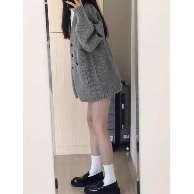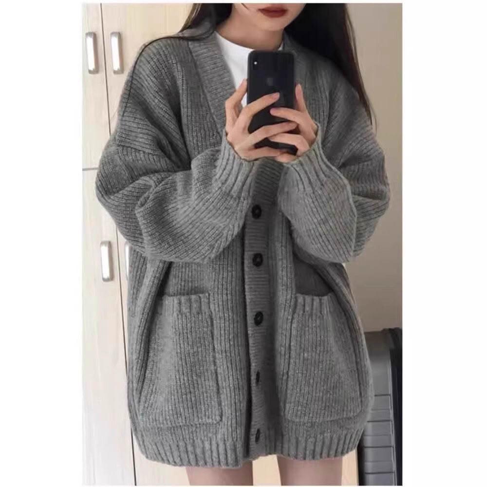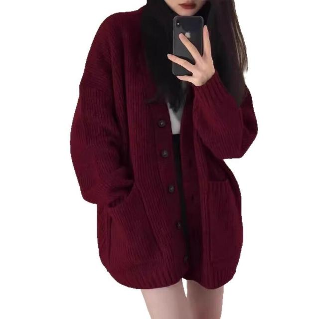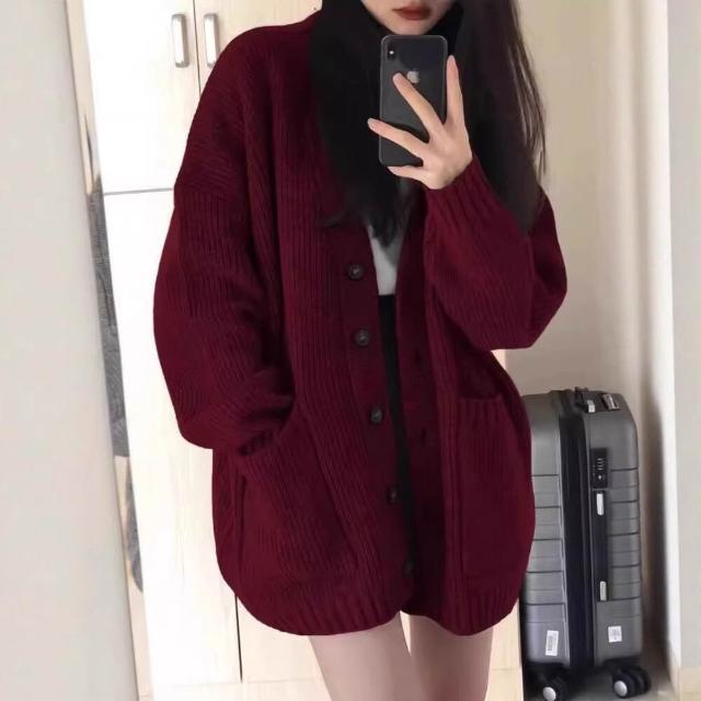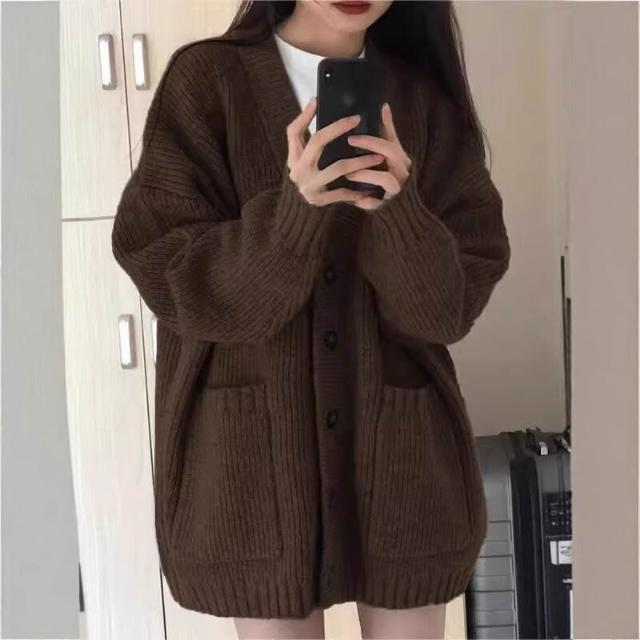 2025秋冬慵懶風韓版寬松針織羊毛外套百搭時尚簡約中長款針織衫