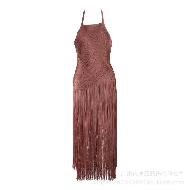 對稱設計長流蘇禮服性感時尚修身繃帶吊帶連衣裙