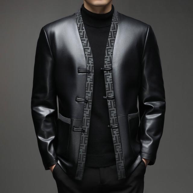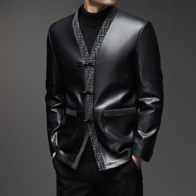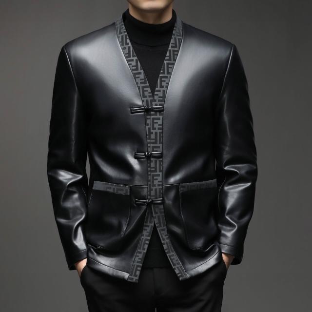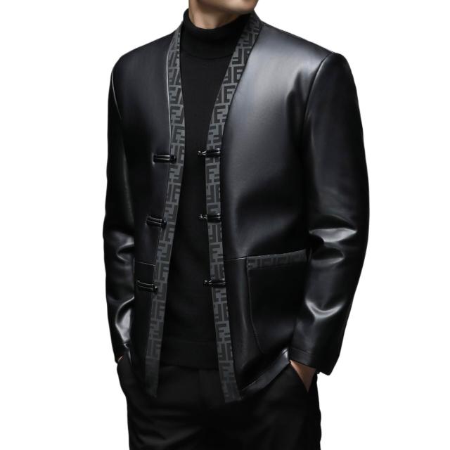 2025加絨真皮皮衣男品牌中國風唐裝全皮夾克商務休閑綿羊皮上衣男