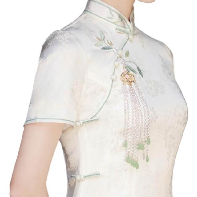 新中式旗袍改良年輕款氣質感少女連衣裙女夏白色素雅刺繡