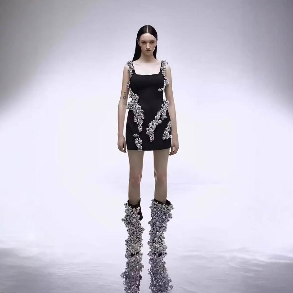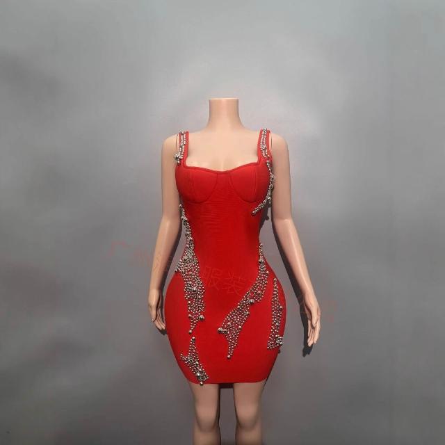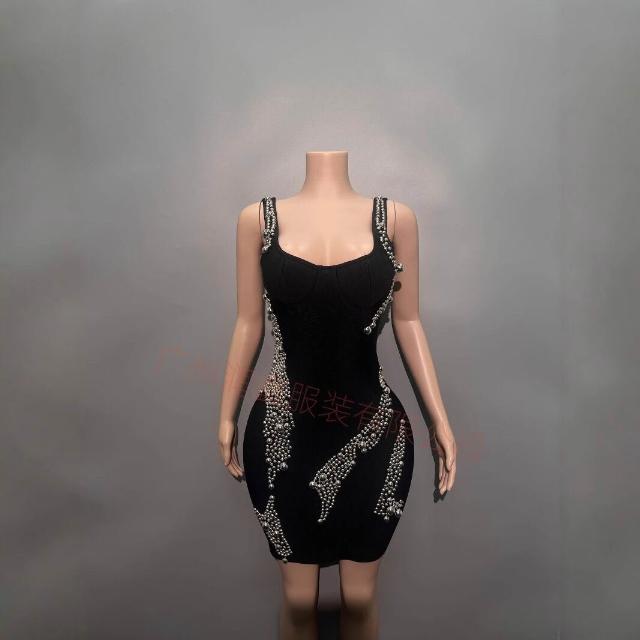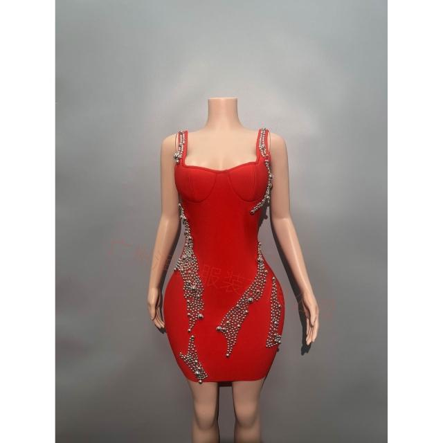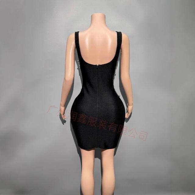 秋冬時尚優雅女裝裙 釘珠短款吊帶繃帶連衣裙party晚禮服