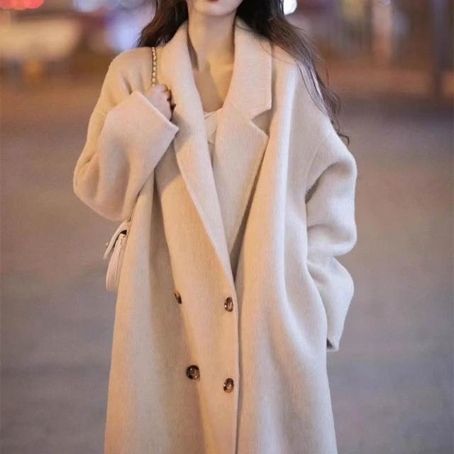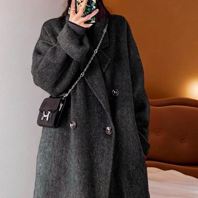 高級感雙面羊絨羊毛大衣女秋冬2025新款小個子呢子黑灰色毛呢外套