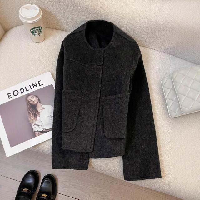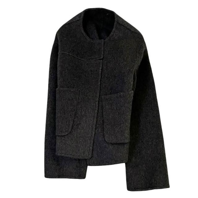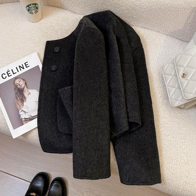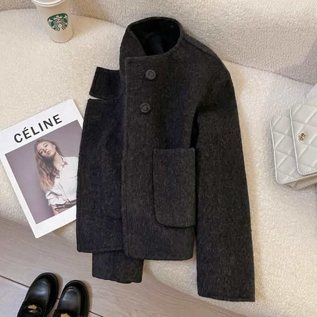 深灰色毛呢外套女八維服飾秋冬設計感雙面呢子大衣
