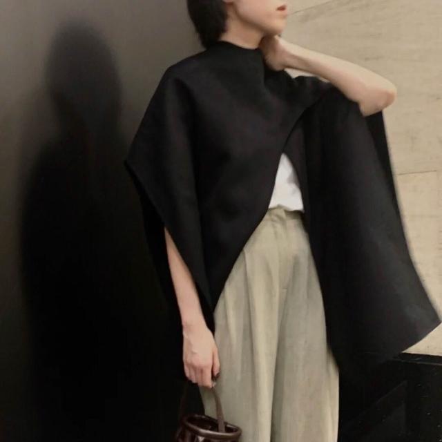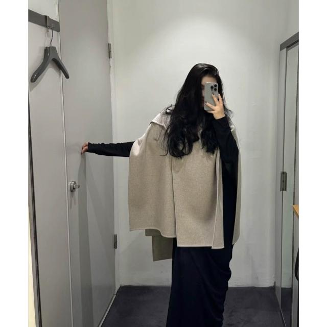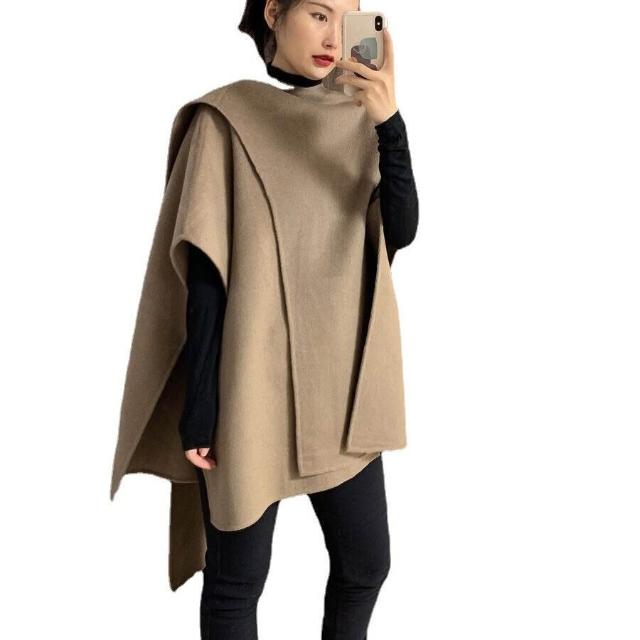 輕奢氣質款2024秋冬不規則寬松雙面呢手工羊毛披肩鬥篷外套