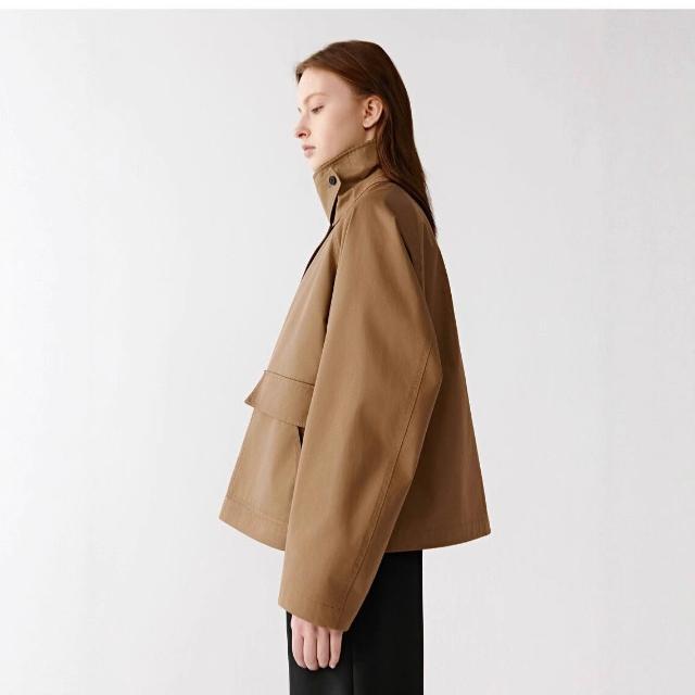 比比優 卡其色風衣 秋季新款 高密斜紋棉 夾克 巴恩風 撞色短外套