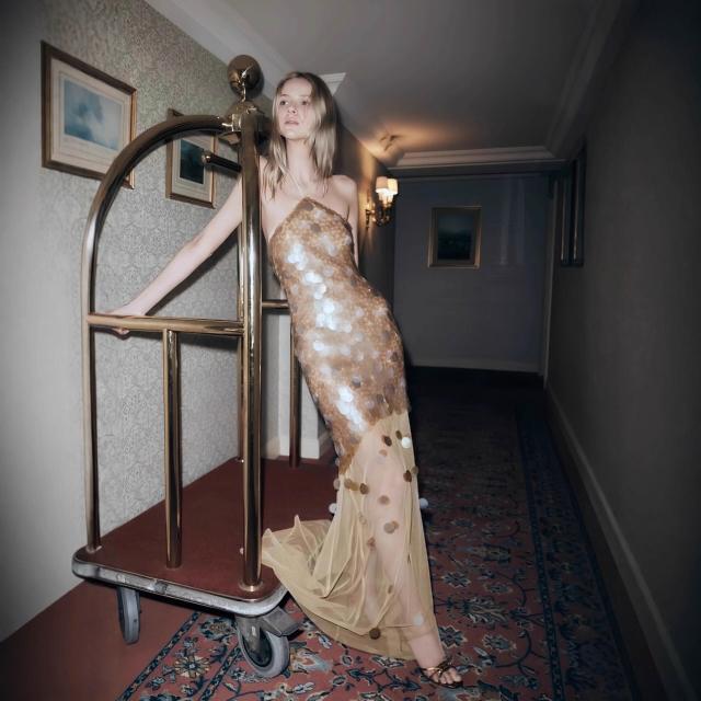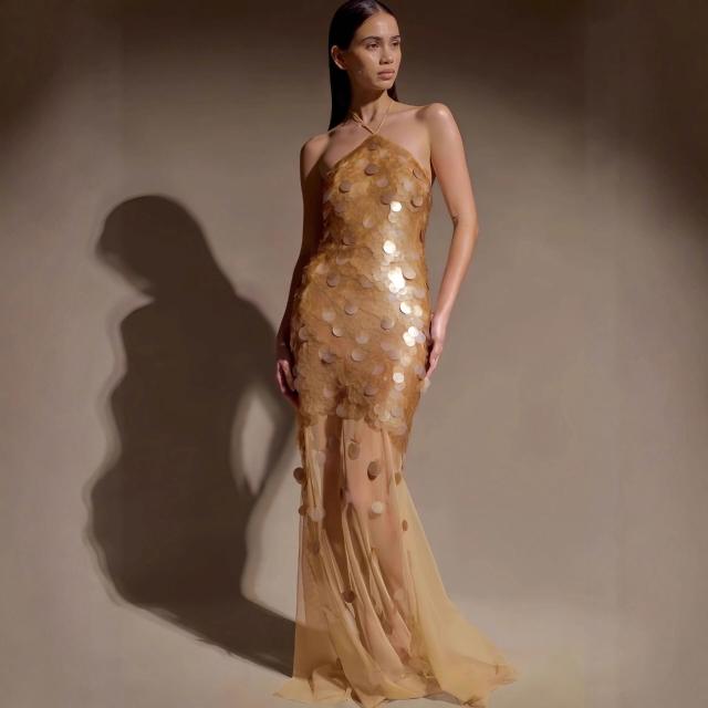 秋季新款法式氣質性感亮片吊帶連衣裙高級感生日派對聚會禮服長裙