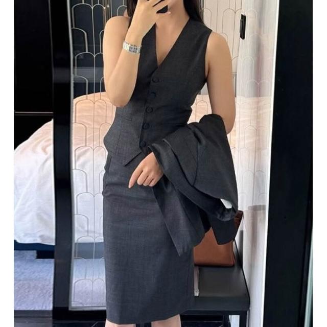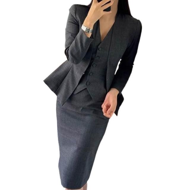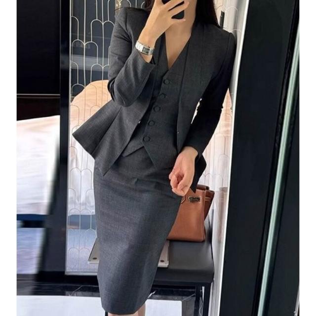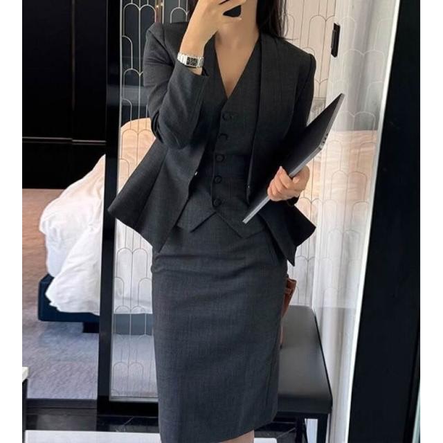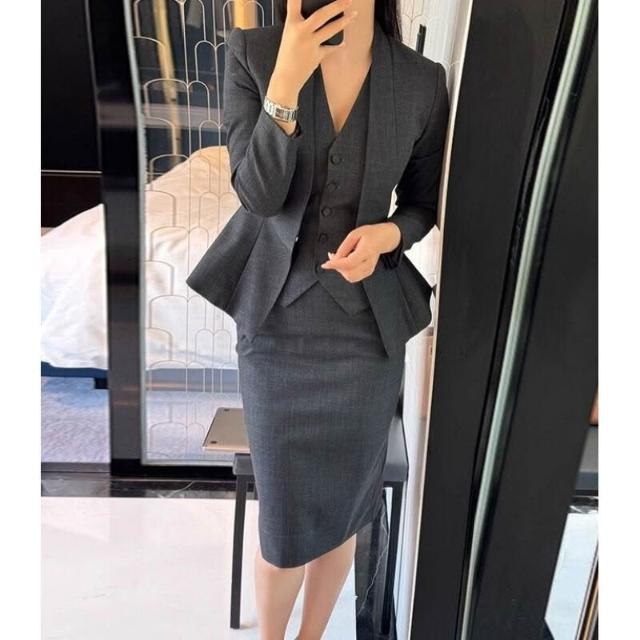 gao級2025秋季新款氣質都市精英西裝馬甲半身裙深灰三件套套裝女