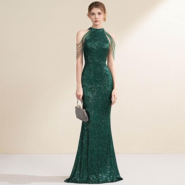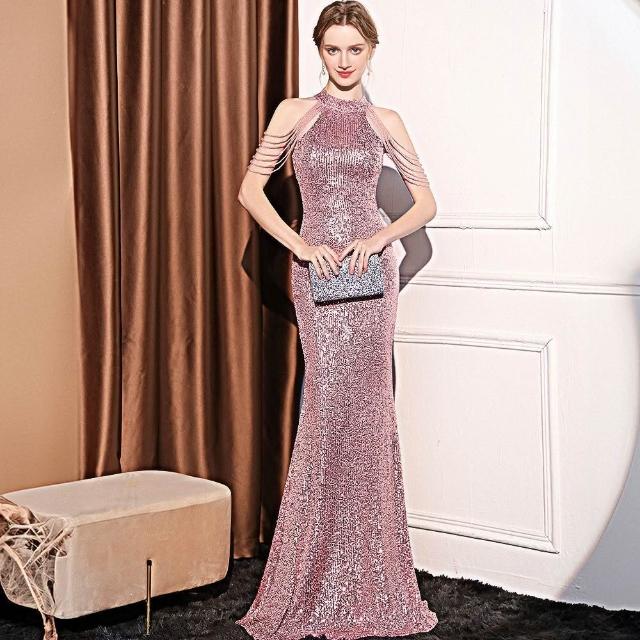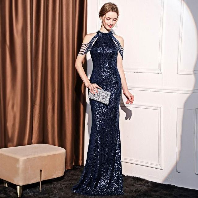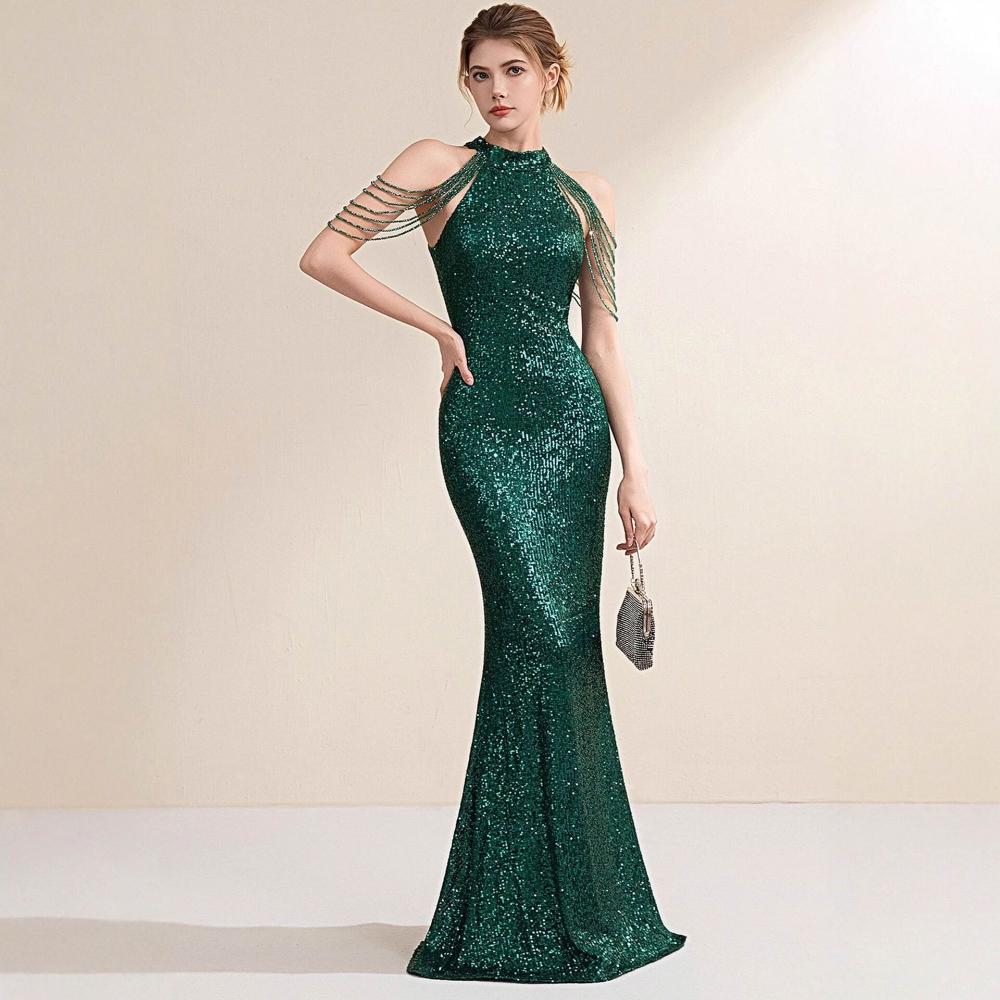 晚禮服女公司年會主持人宴會氣質簡約輕奢小眾亮片長款連衣裙