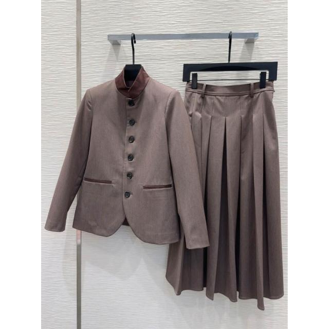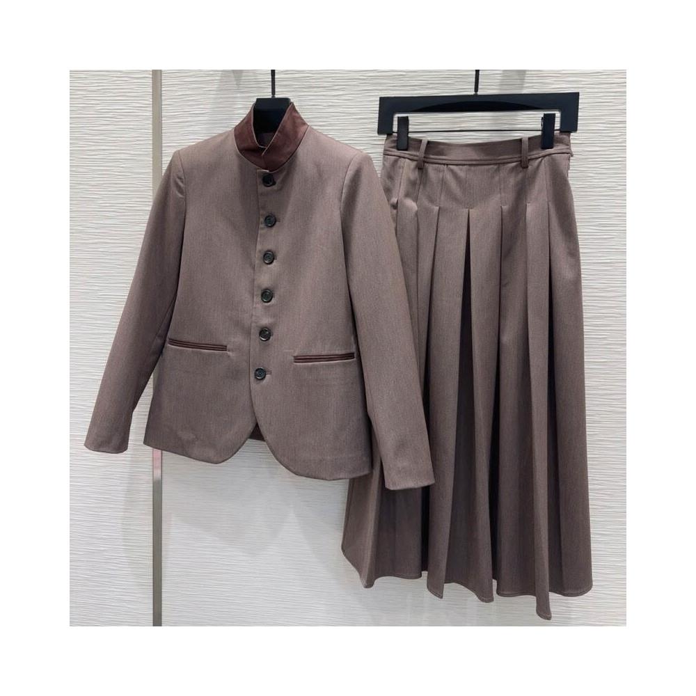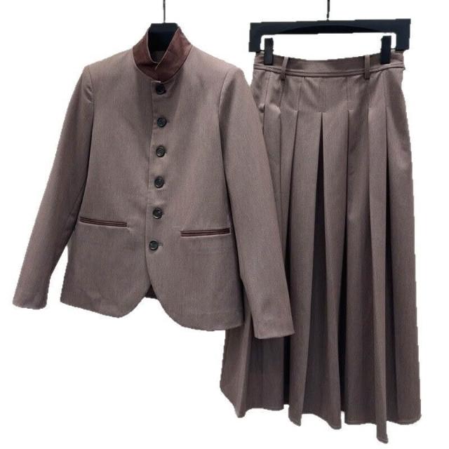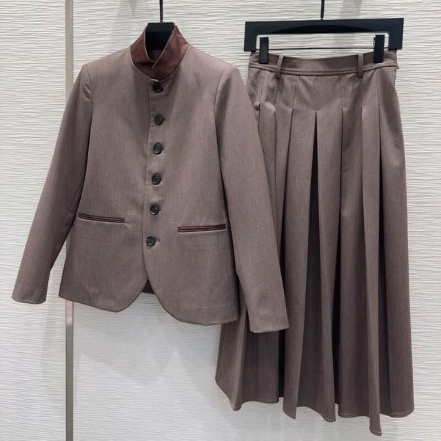 時尚立領單排扣長袖西裝外套高腰顯瘦百褶半裙套裝女秋冬2025