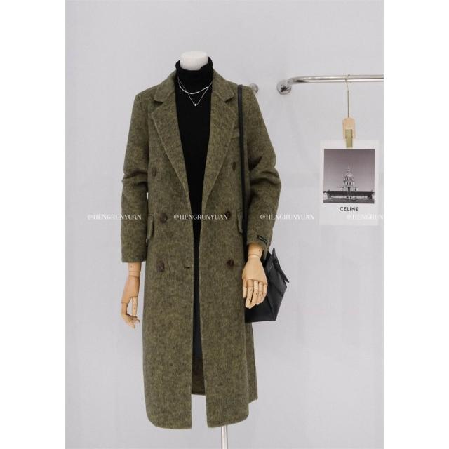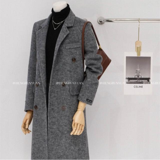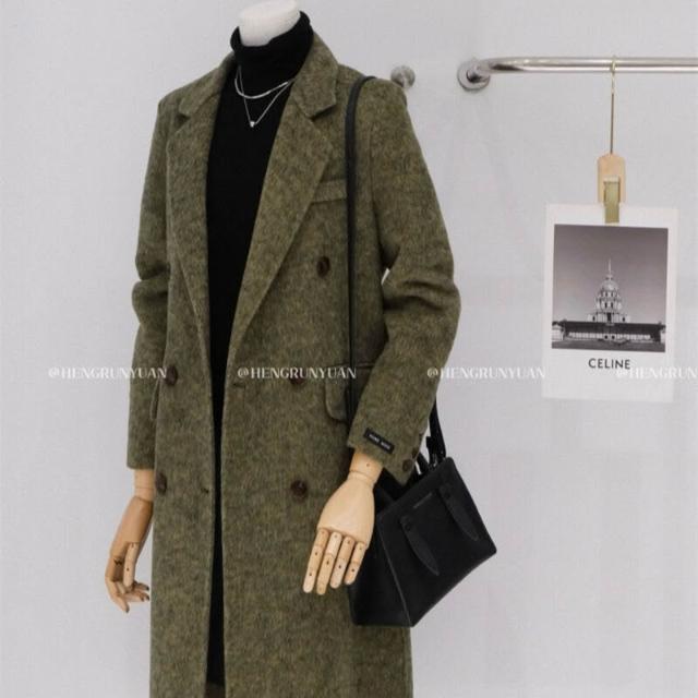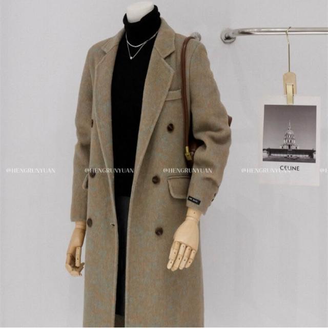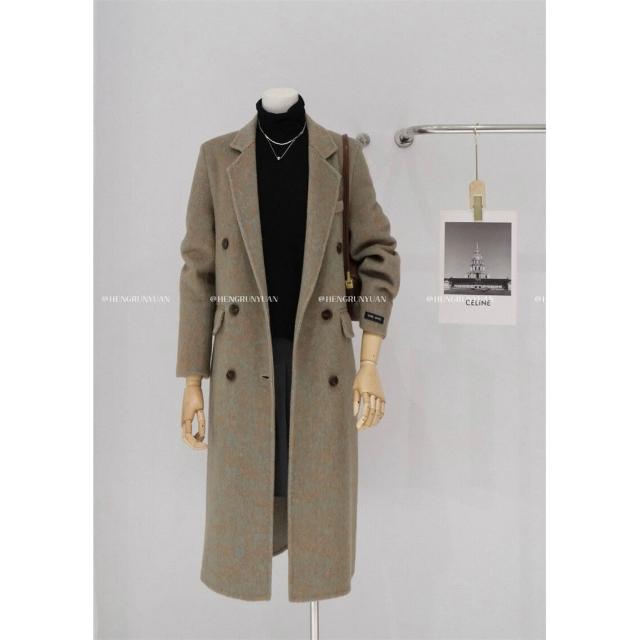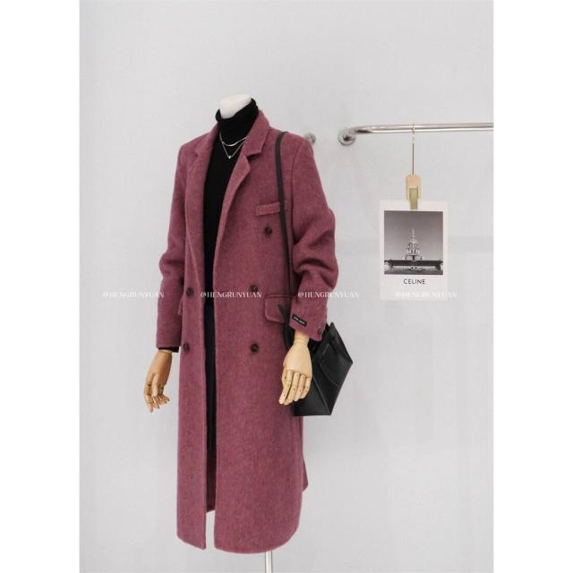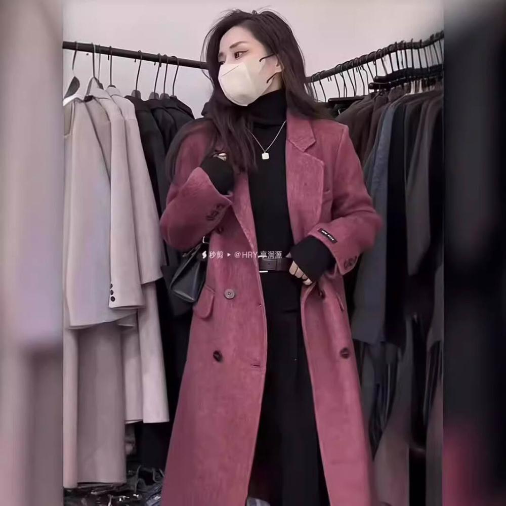 正肩高級感雙面羊絨大衣長款2024年新款秋冬羊毛西裝女士毛呢外套