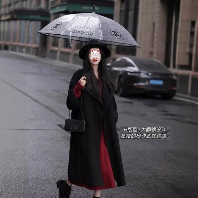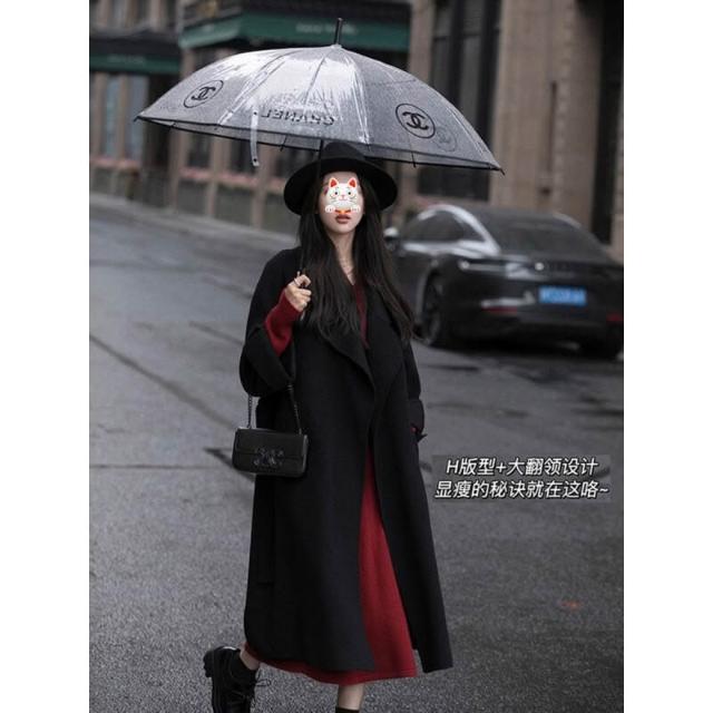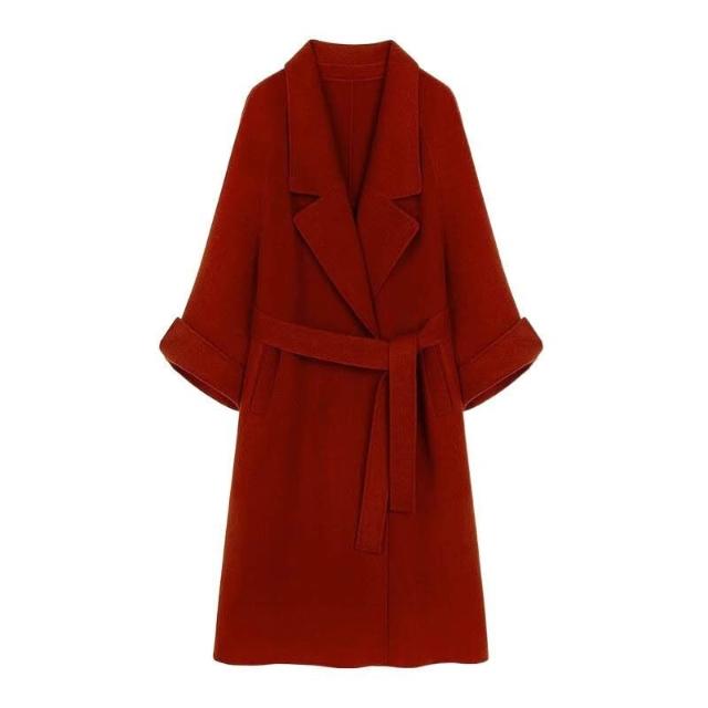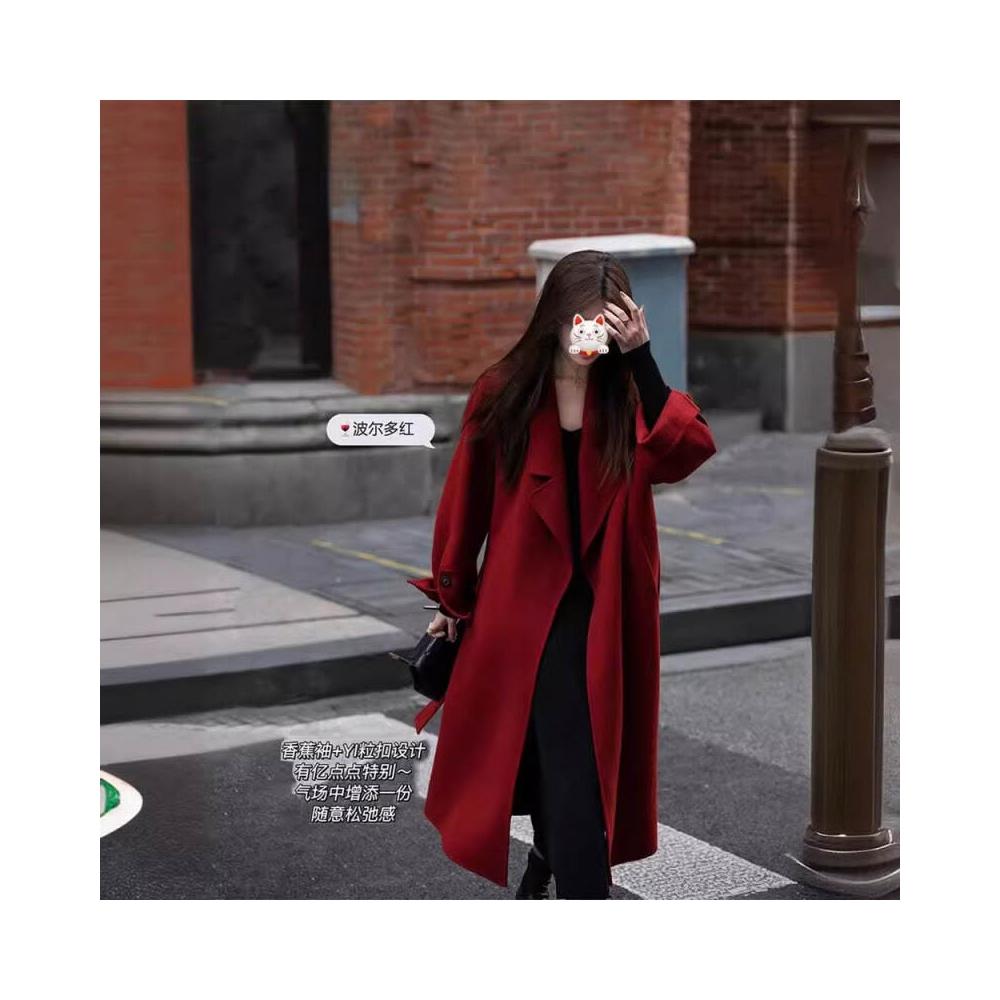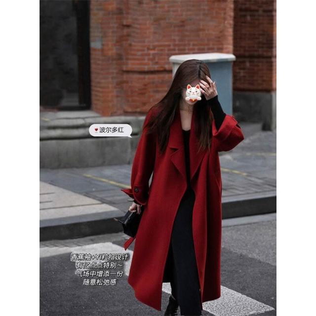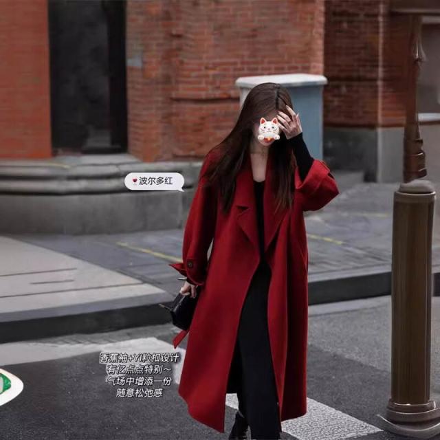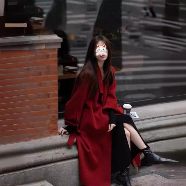 紅色雙面羊絨大衣女冬裝新款韓版赫本風呢大衣