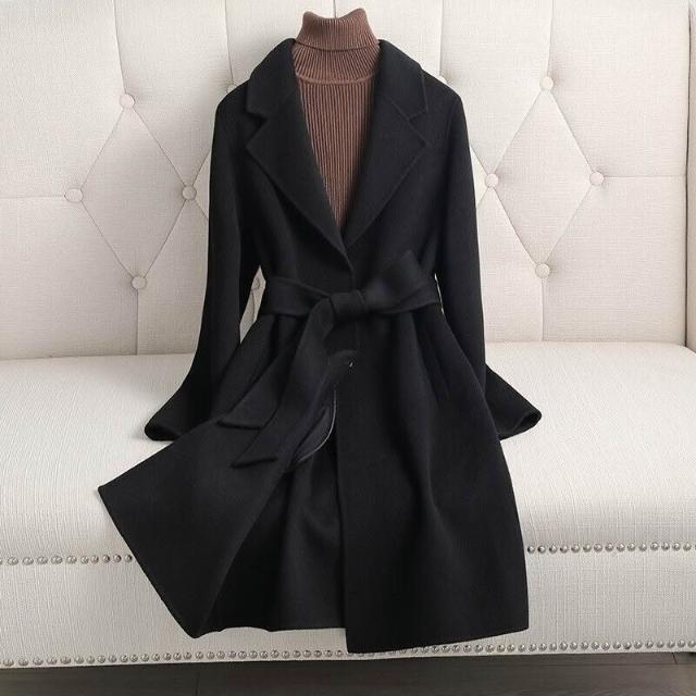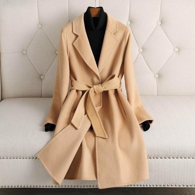 秋冬新款雙面羊絨大衣女中長款高端羊毛呢外套小個子