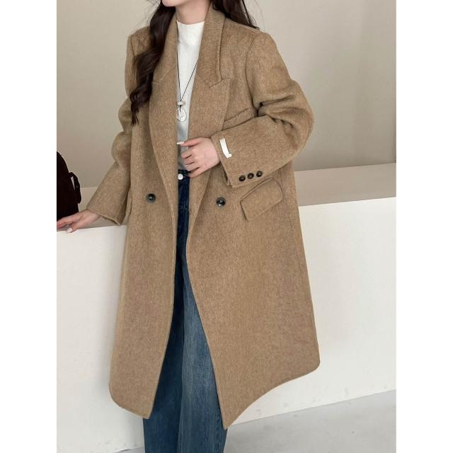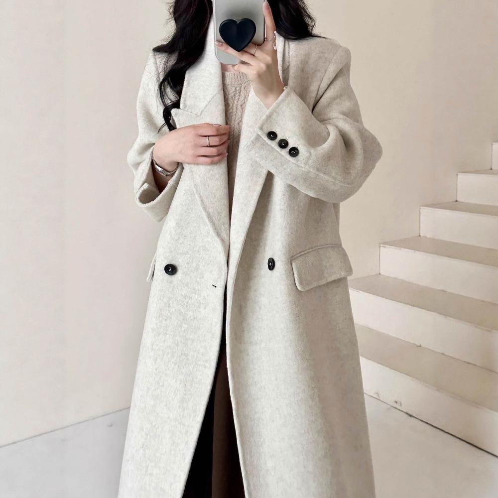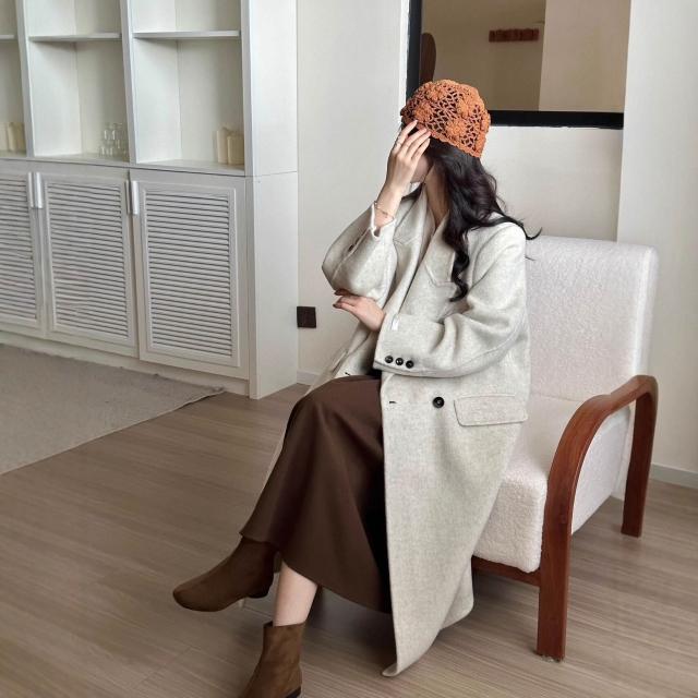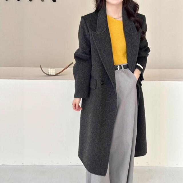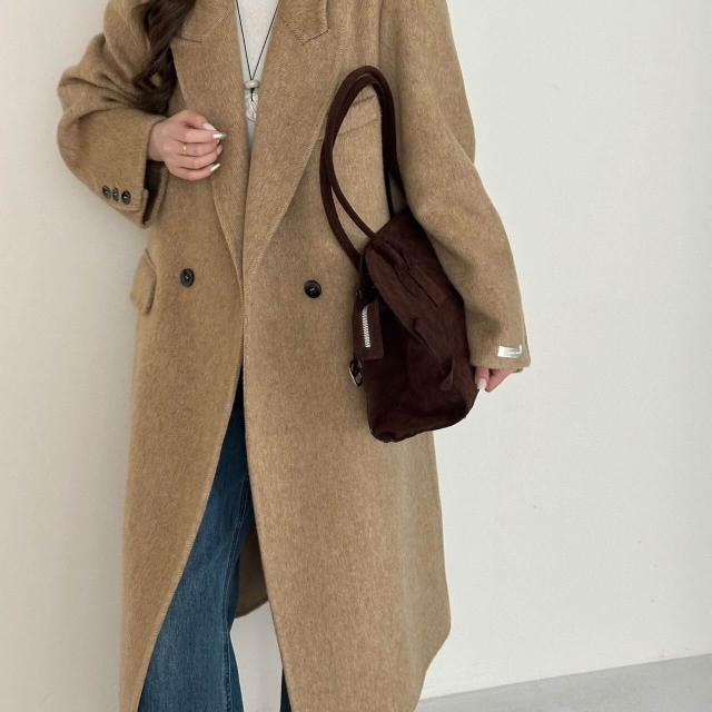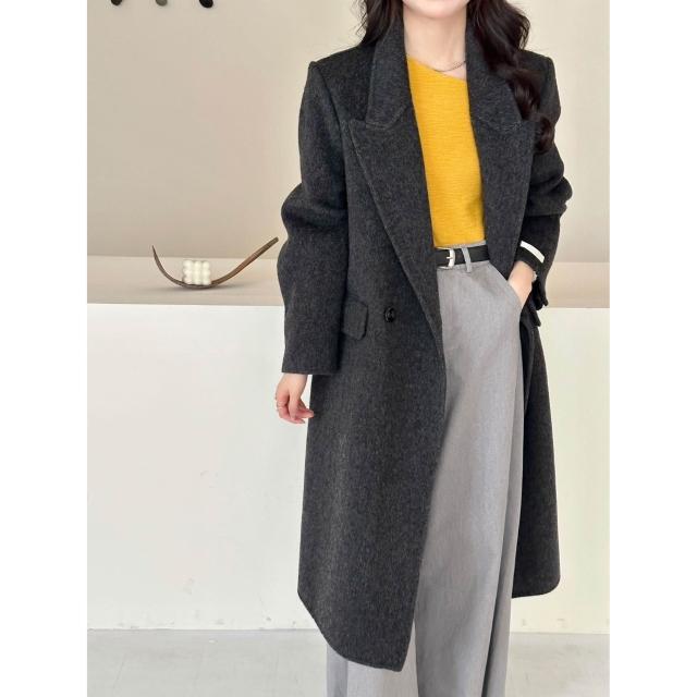 秋冬新款高級感正肩雙面羊毛大衣韓版通勤赫本風小個子毛呢外套女