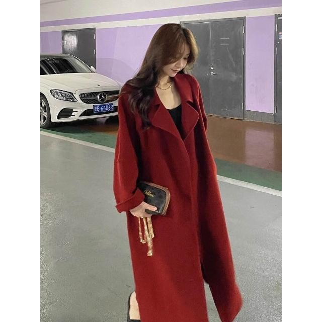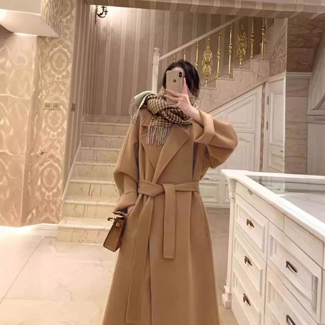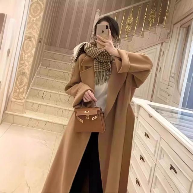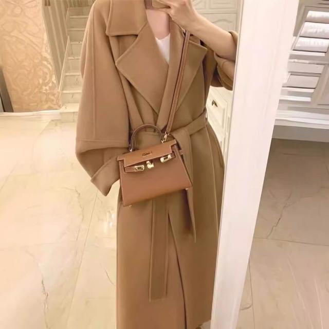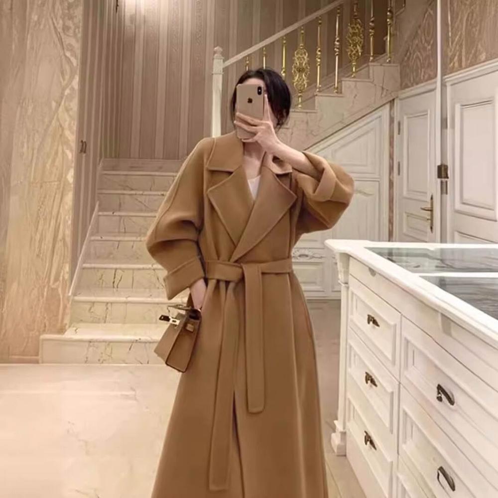 駝色雙面羊絨大衣女2025秋冬新款赫本風中長款氣質毛呢大衣外套女