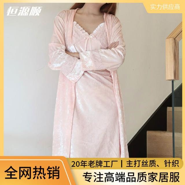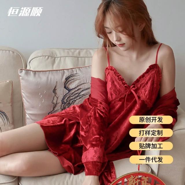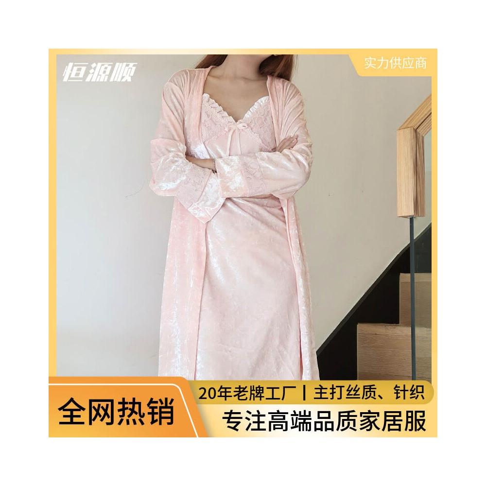 奢華性感睡衣女 吊帶睡裙睡袍兩件套 高級蕾絲不紮膚可外穿家居服
