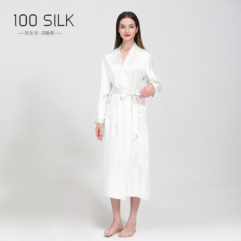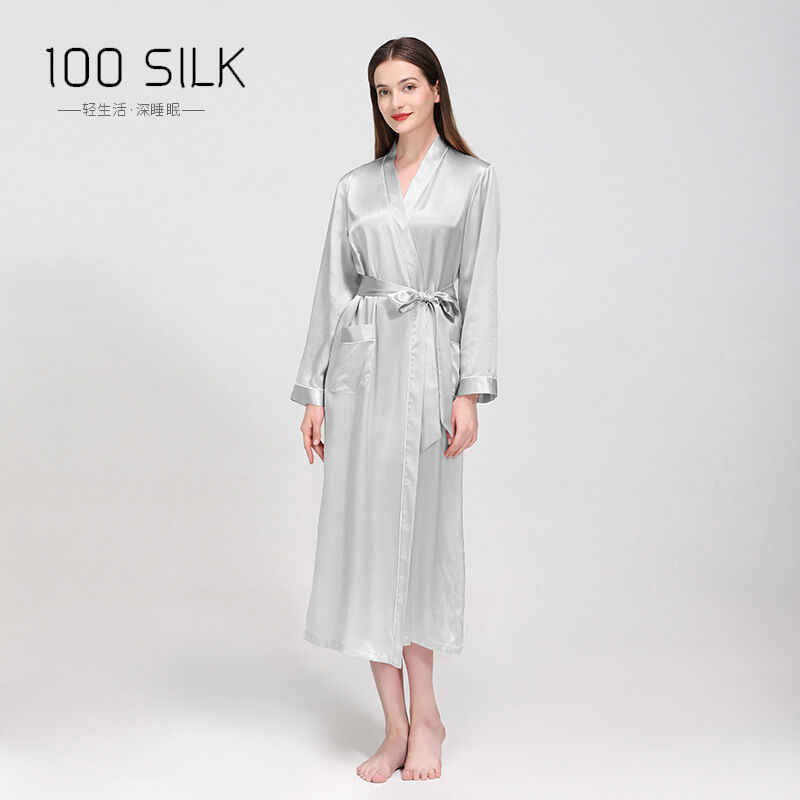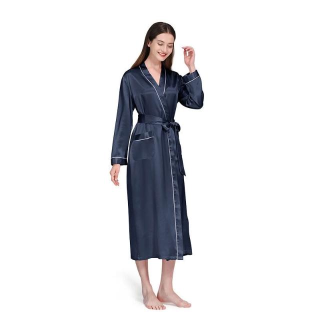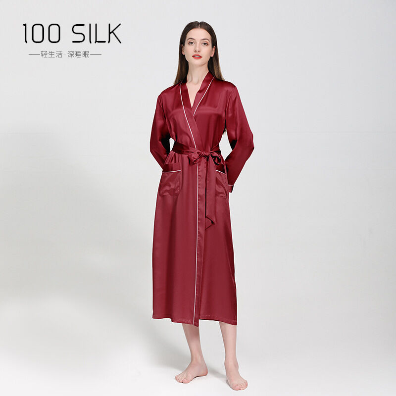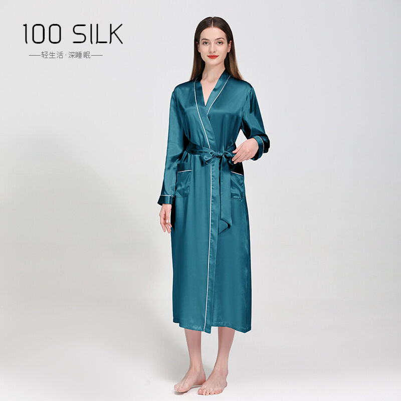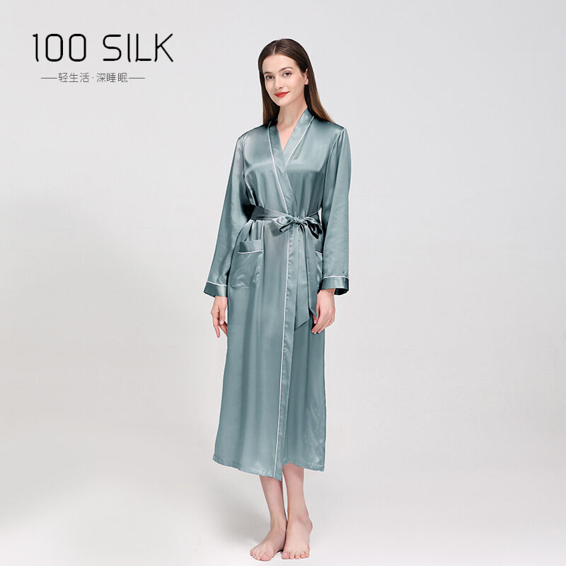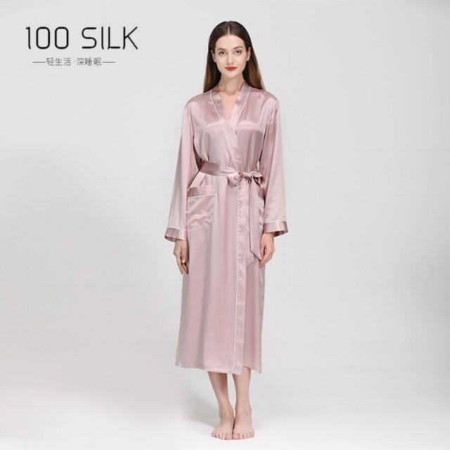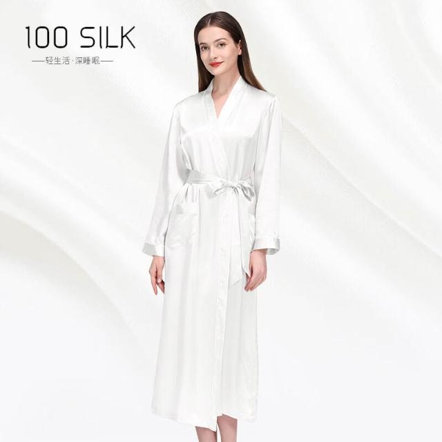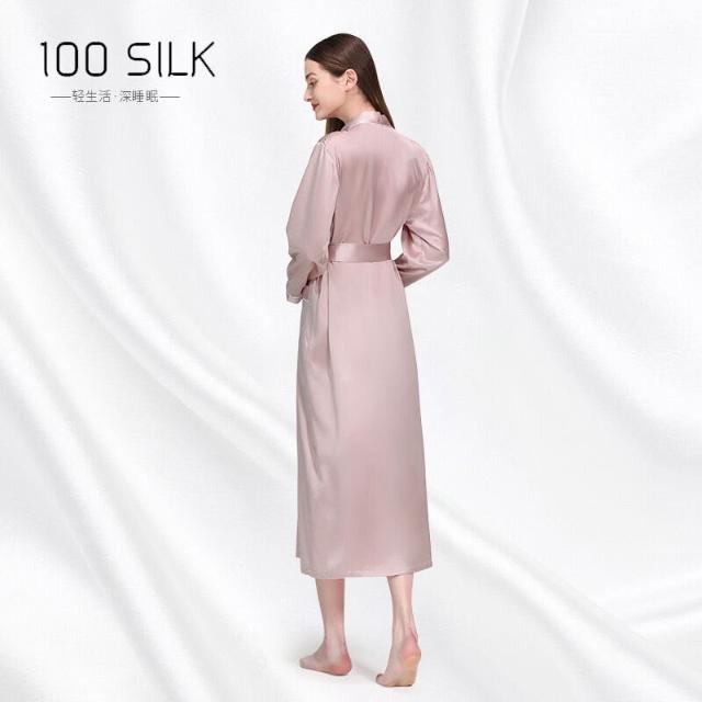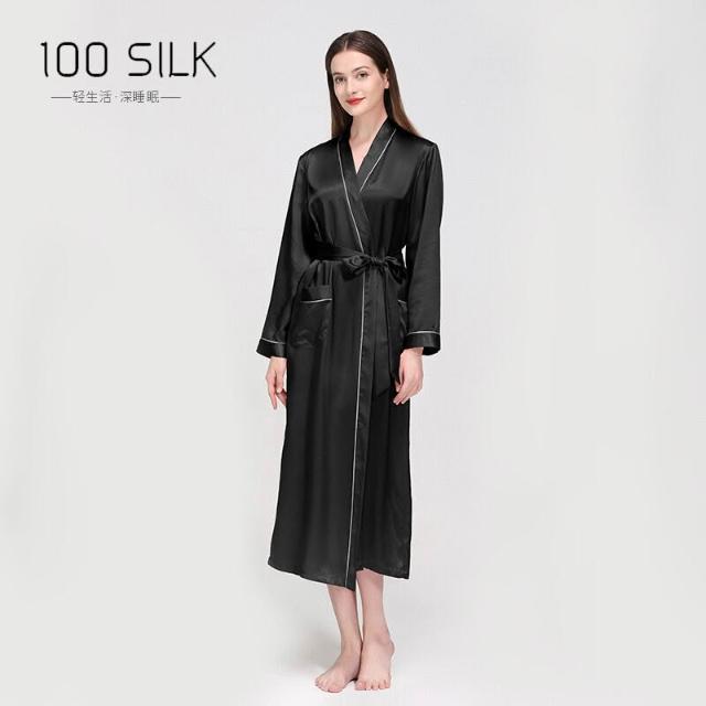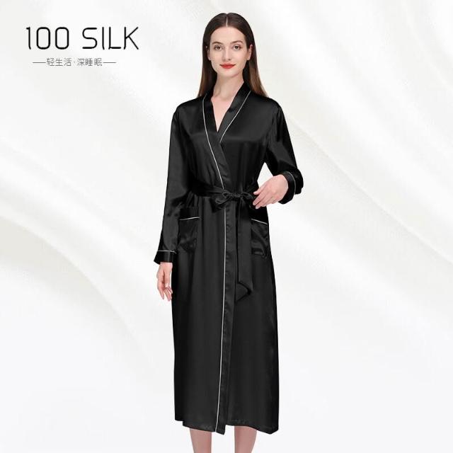 新品真絲睡袍翻領長款晨袍睡衣女士性感浴袍100%桑蠶絲家居服