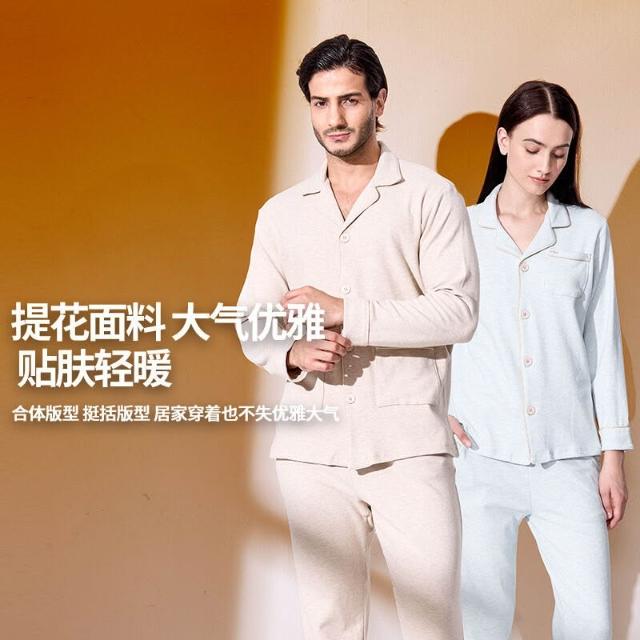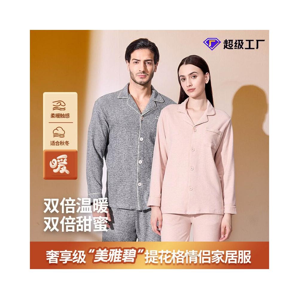奢享級美雅碧提花格新款秋冬情侶翻領睡衣套裝可外穿家居服