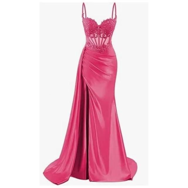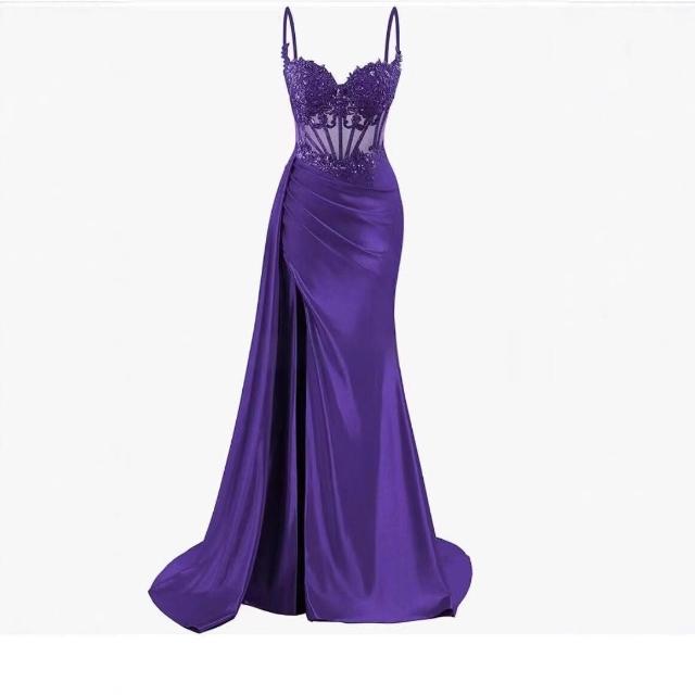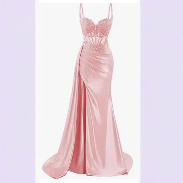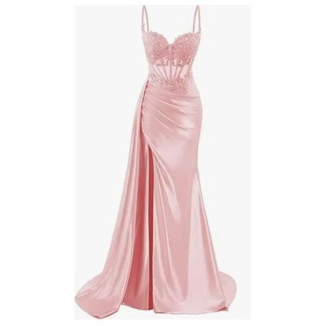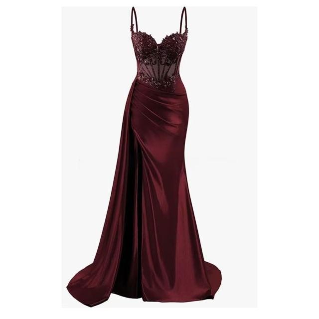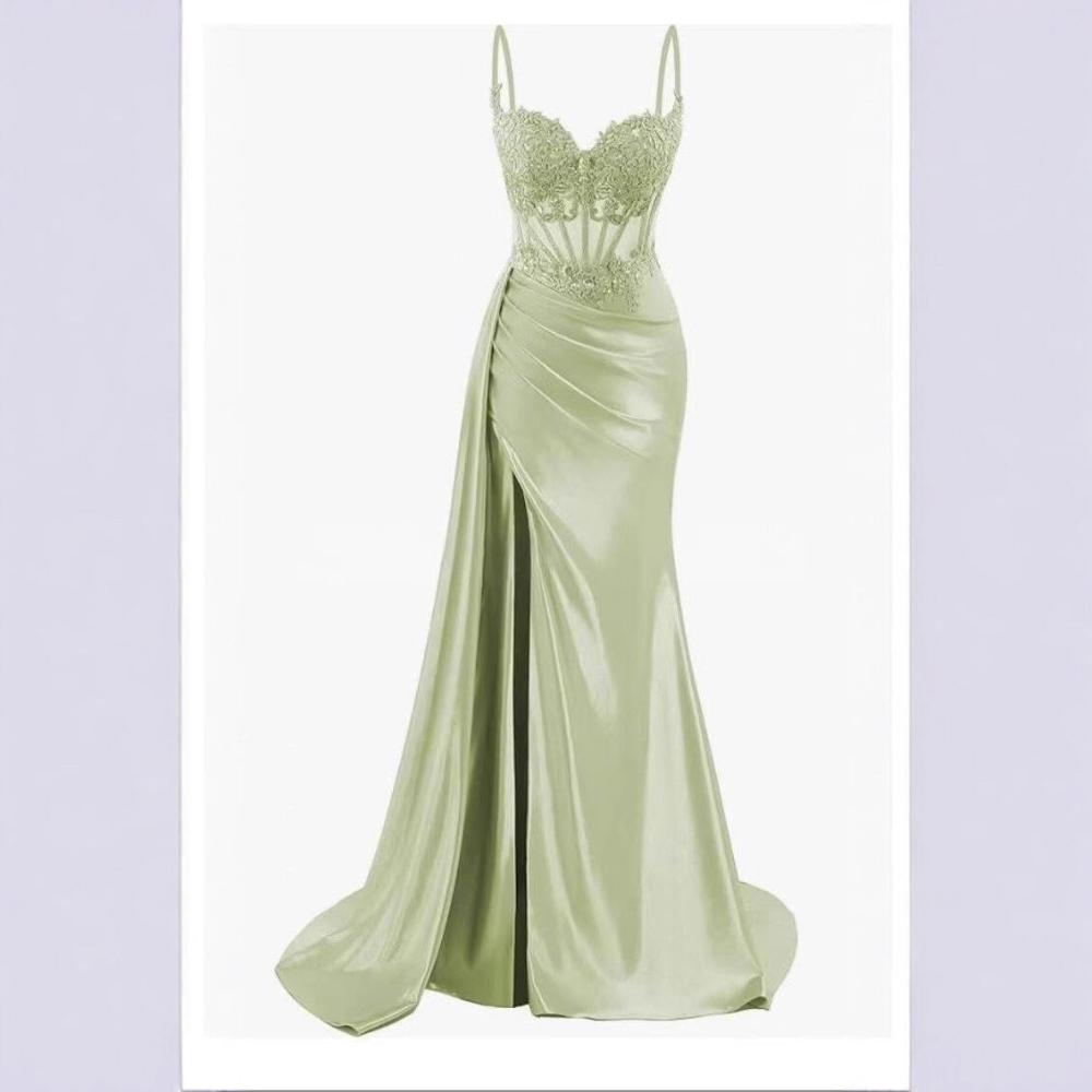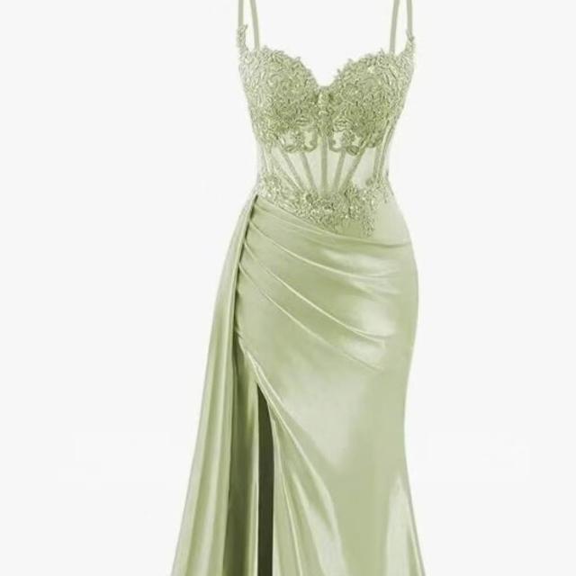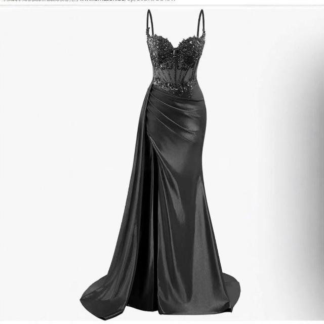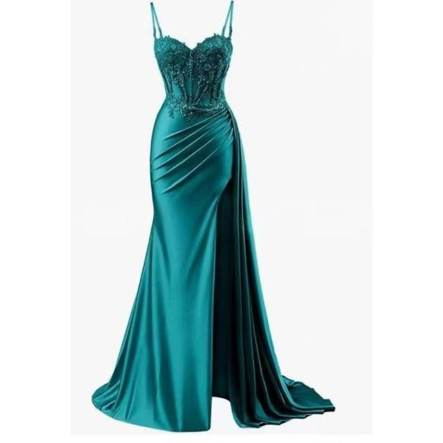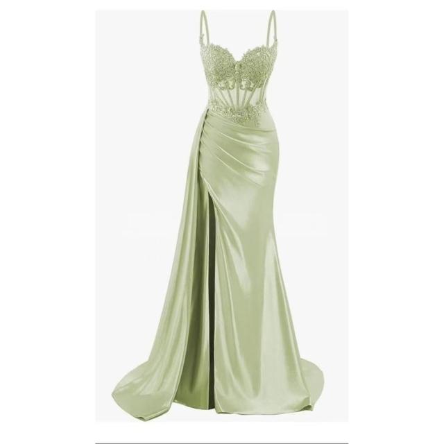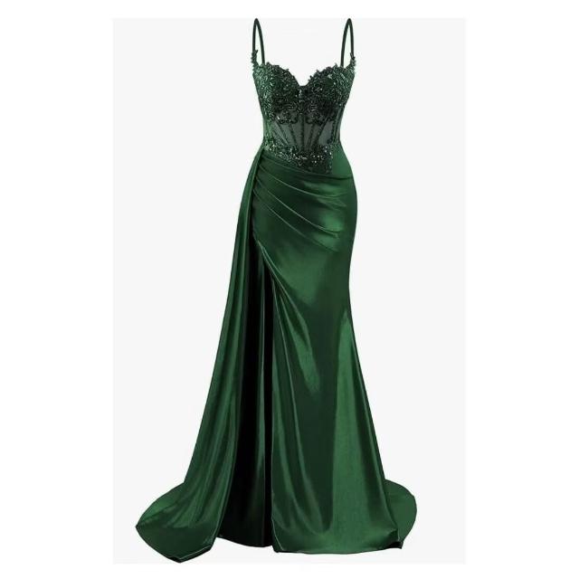 緞面禮服2025新款綠色性感吊帶長款舞會派對晚禮服連衣裙女