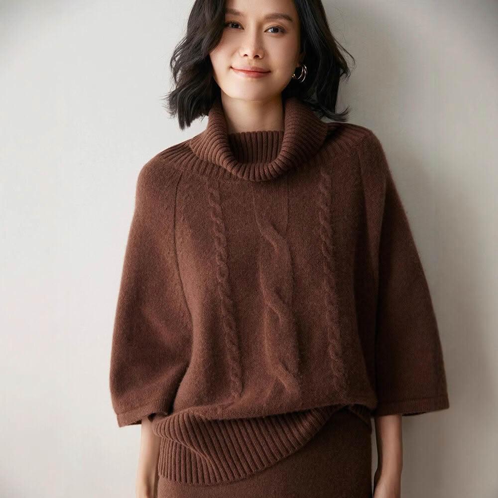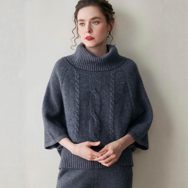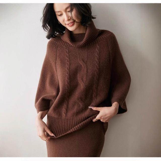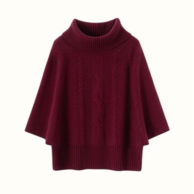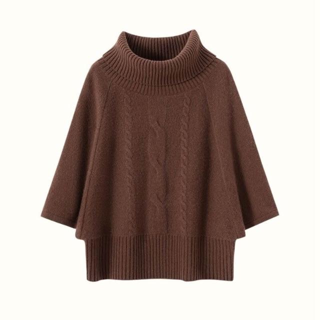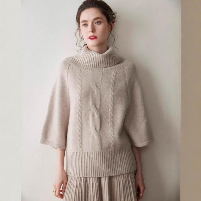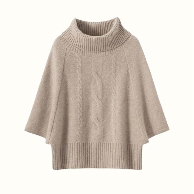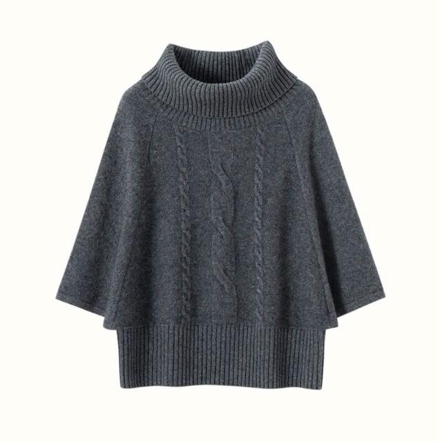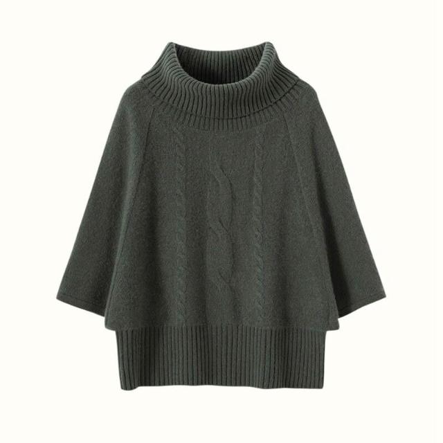 法式絞花鬥篷式針織衫女秋冬慵懶蝙蝠袖顯瘦套頭麻花羊絨毛衣