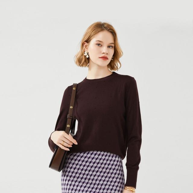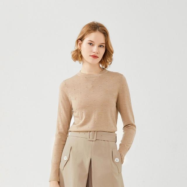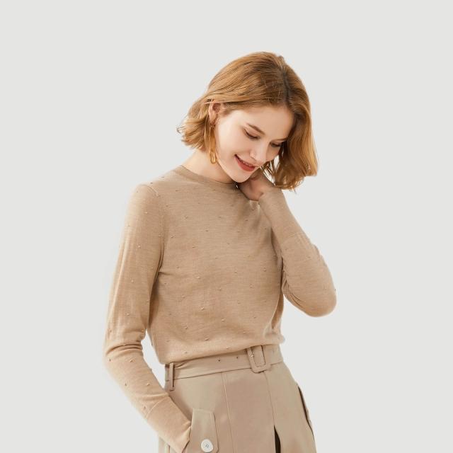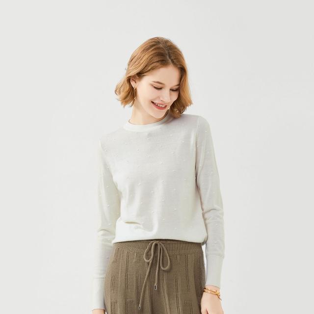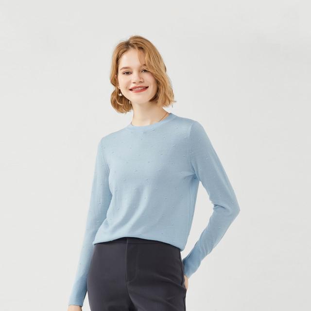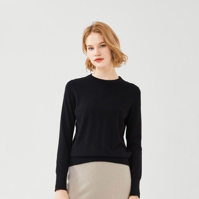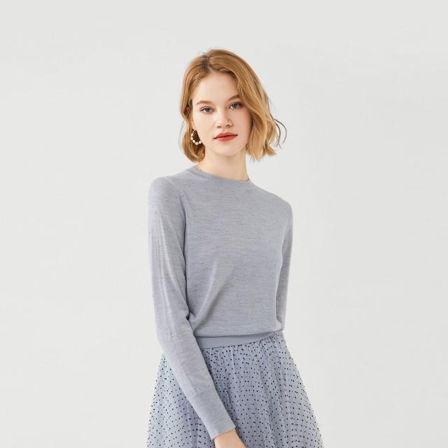 純羊毛衫秋季女裝圓領長袖套頭打底毛衣氣質百搭針織衫