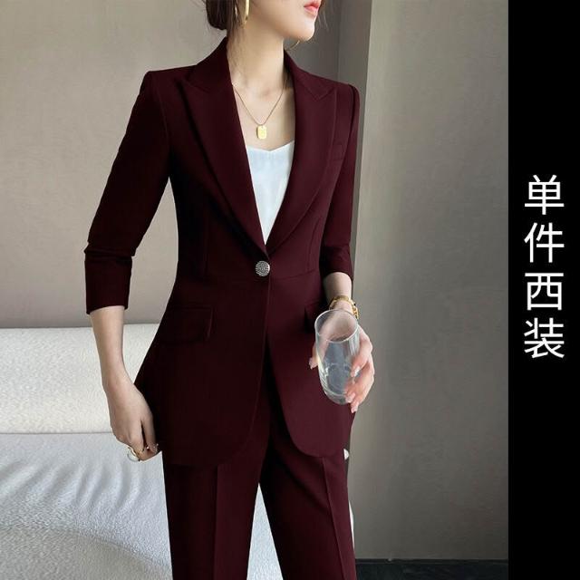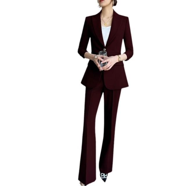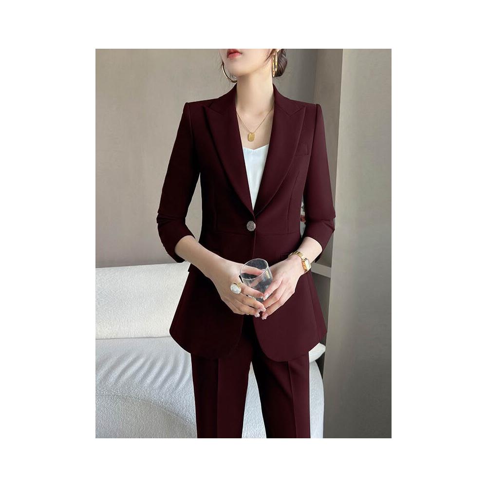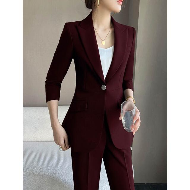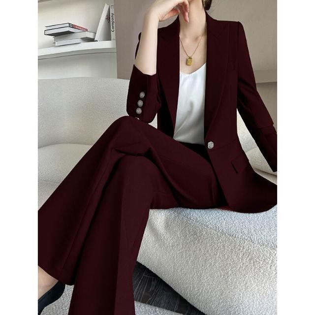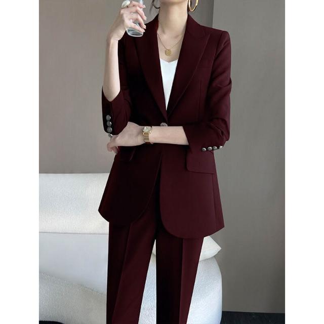 高級感新款時尚女士酒紅色西裝套裝氣質通勤上班族兩件套西服