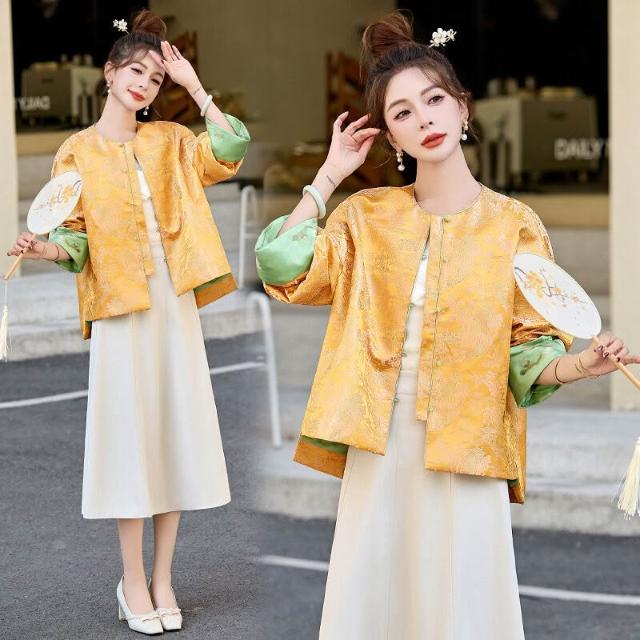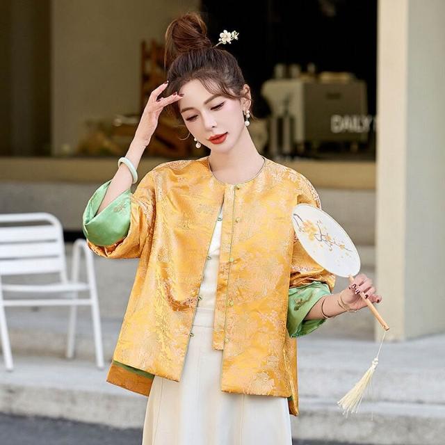 新品春秋新款女裝新中式提花國風時尚外套上衣AH66609
