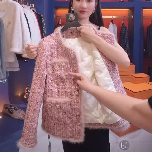 粉色小香風外套 加絨加厚短款外套 氣質精致百搭小香風上衣 顯瘦保暖高級感女外套