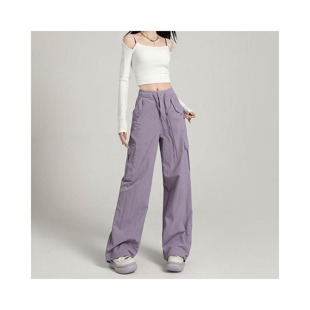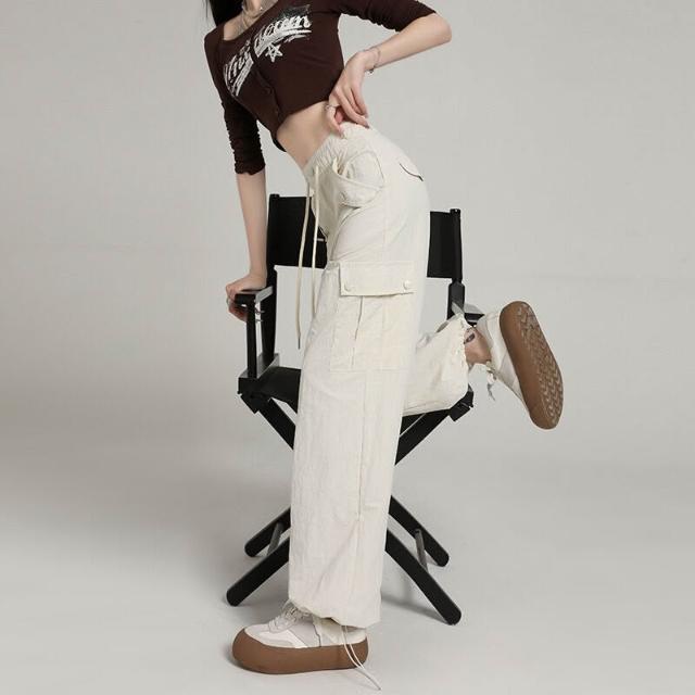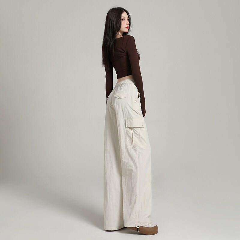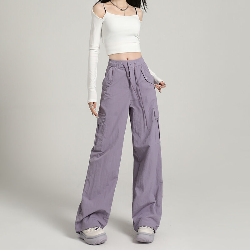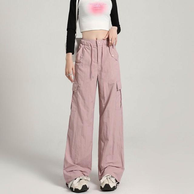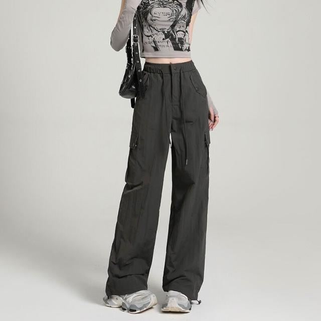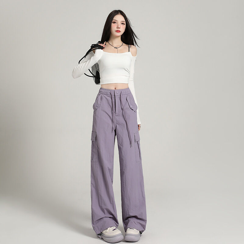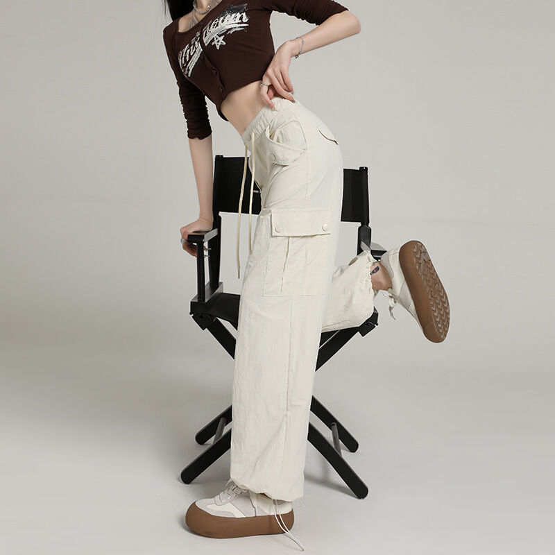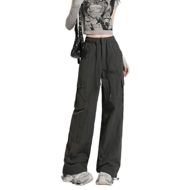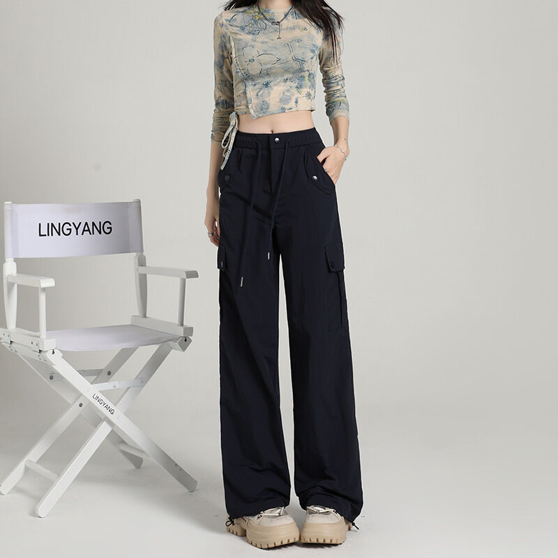 比比優 高級感速幹工裝褲女酷飒風2025夏季薄款寬松顯瘦直筒戶外闊腿長褲