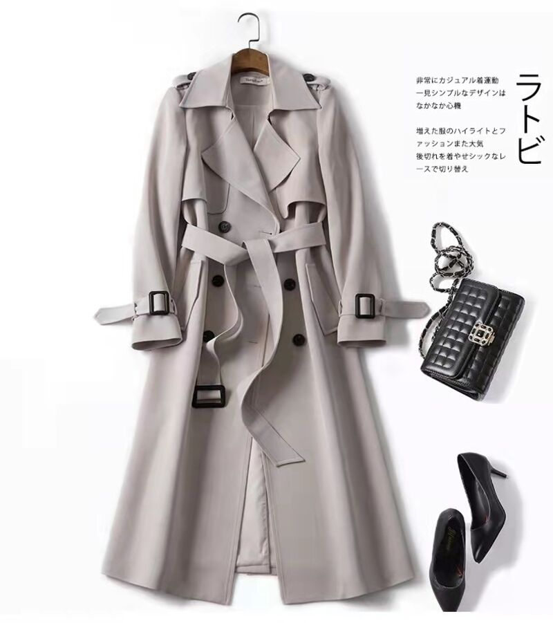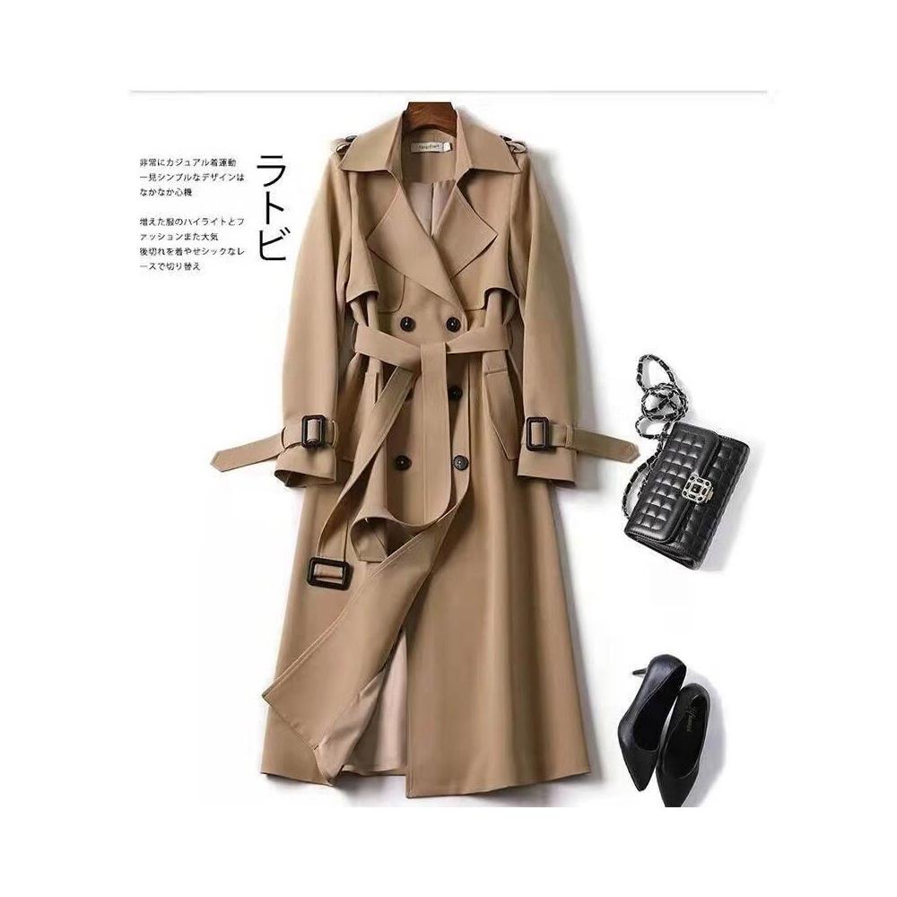 比比優 風衣女中長款2025春季新款韓版大碼小個子流行英倫風大衣過膝外套